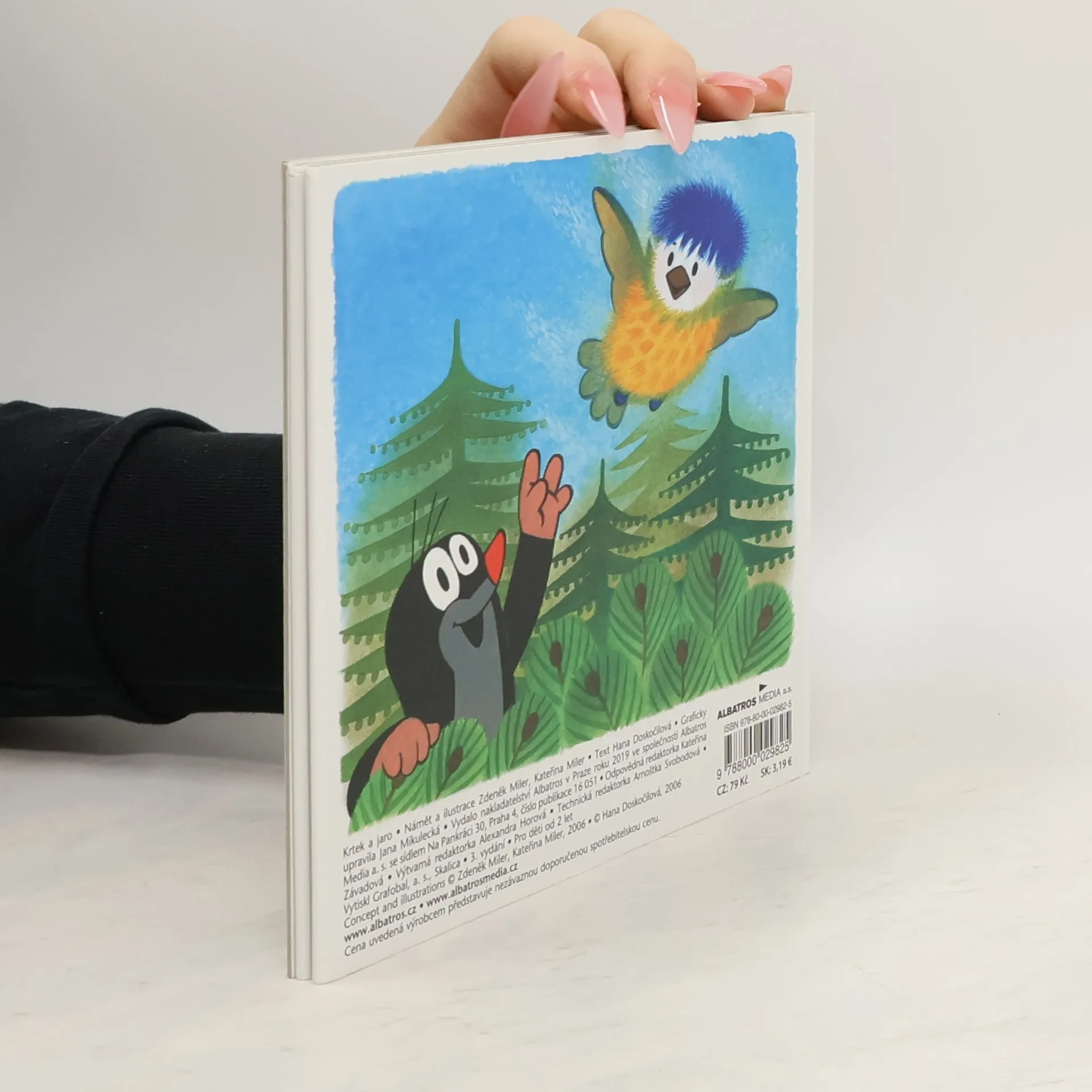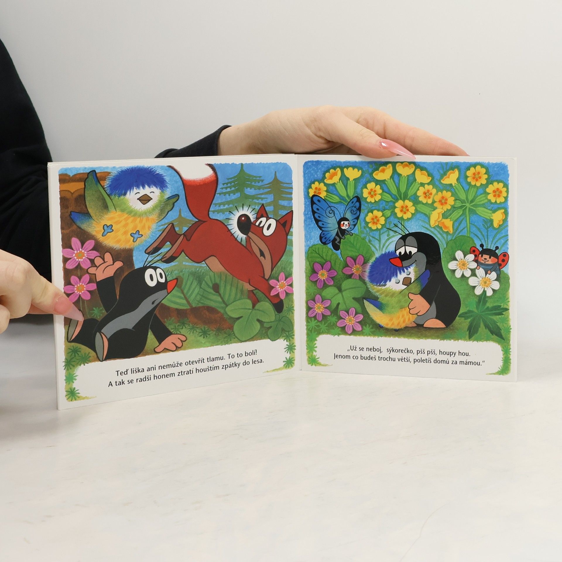 O tom, že jaro už je tady, se Krtek přesvědčil, když po zimě vykoukl ze své podzemní světničky. Krtek je rád, že zimu dobře přečkal, a těší se na jarní sluníčko. Ale jak ostatní zimu přežili? Když Krtek zaslechne úpěnlivé pípání malé sýkorky, která vypadla z dutiny stromu, je to úkol pro něj jako stvořený. Ptáčátko utěší, nakrmí, a než zesílí a naučí se lítat, ochrání ho před liškou. Leporelo pro nejmenší.