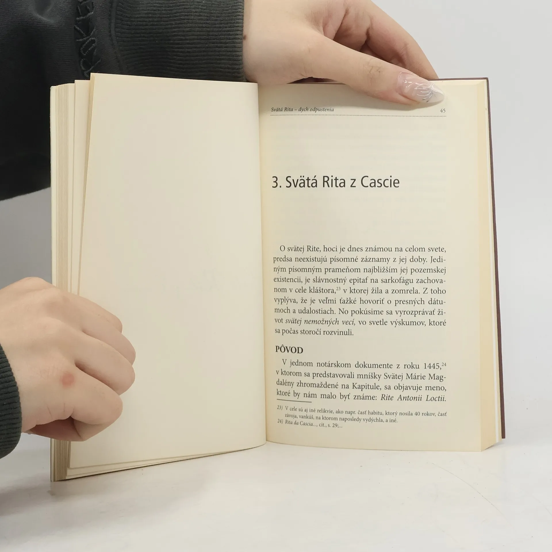 Manželka, matka, vdova, augustiniánska mníška. Sila jednej veľkej ženy, výnimočnosť veľkej svätice. Svätá nemožných vecí: tak je všeobecne známa, milovaná a uctievaná Rita z Cascie.Okolo jej postavy sa postupom času rozvinula bohatá ľudová tradícia. Najskôr dievča, potom manželka, matka, vdova a nakoniec rehoľníčka. Počas svojho života žila evanjeliový zákon odpúšťania a tak až dodnes ukazuje jedinú cestu pre budovanie pokoja v rodine, v spoločnosti, vo svete.S úmyslom zostať vernými historickosti faktov, avšak bez vylúčenia niečoho, čo nám podáva tradícia, autori napísali tento nový životopis.
