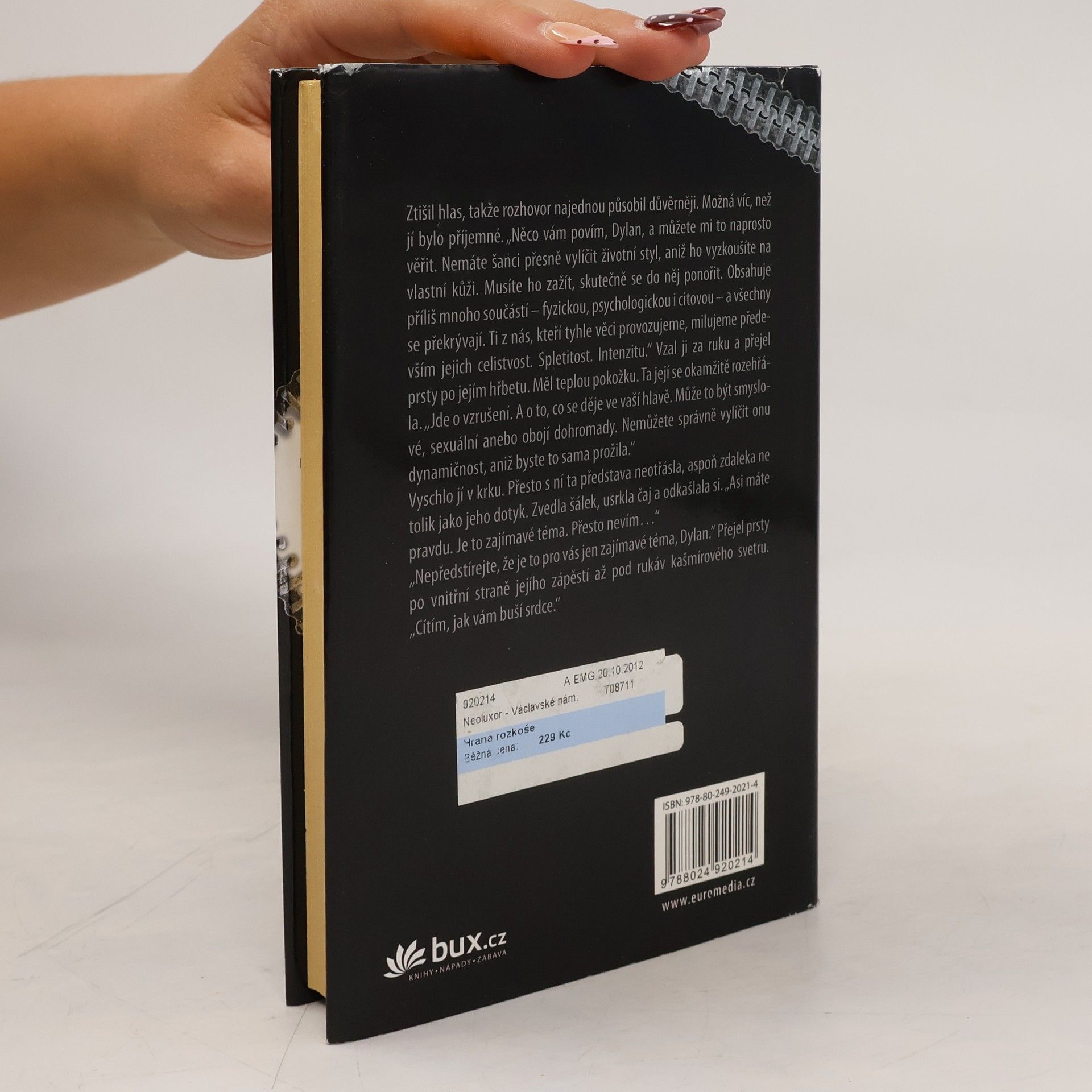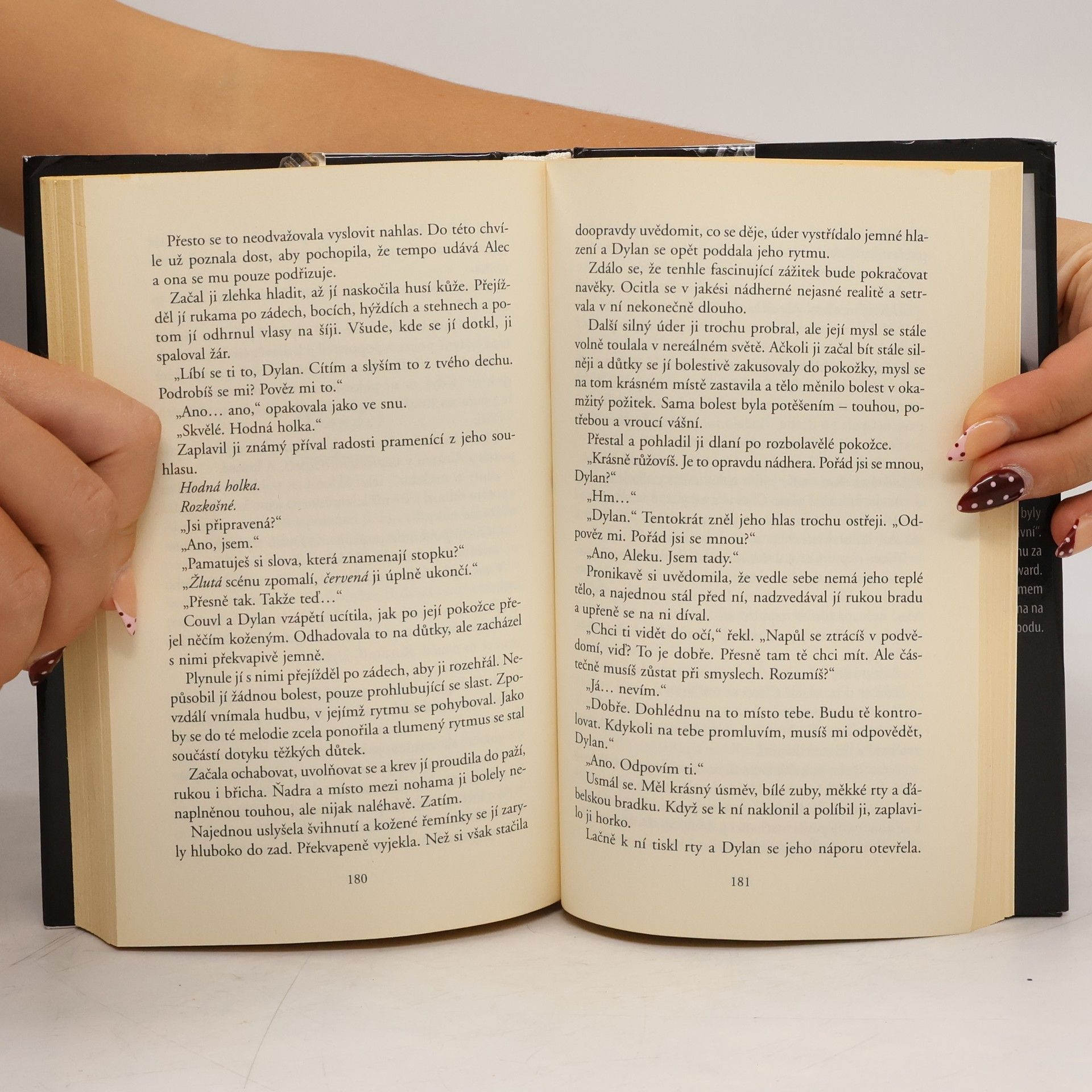 Pro spisovatelku erotických románů Dylan Ivoryovou je důležité mít vše plně pod kontrolou. Potom se seznámí s mužem, který ztělesňuje vše, čím ona není… a vše, po čem tajně touží. Alec Walker píše psychologické thrillery a vede vzrušující život. Své dominantní sklony umí uspokojit a nedovolí, aby v cestě jeho tužbám stála nějaká pravidla. Jediné, čeho se bojí, je skutečná láska… Dylan shromažďuje informace pro novou knihu a přitom se seznámí s Alecem. Ten jí nabídne neopakovatelný vhled do vztahu plného bolesti a rozkoše, pokud se mu ovšem plně odevzdá. Pyšná Dylan je přesvědčená, že ji Alec nezlomí… ale brzy v sobě objeví pocity a touhy, o kterých neměla tušení. Alec je zkušený dominant, a proto ho city k té zvláštní, nepoddajné ženě zaskočí. Dokáže se sám vzdát bezpečných mantinelů a poslechnout své srdce, aby si udržel ženu, která ho poprvé v životě srazila na kolena?