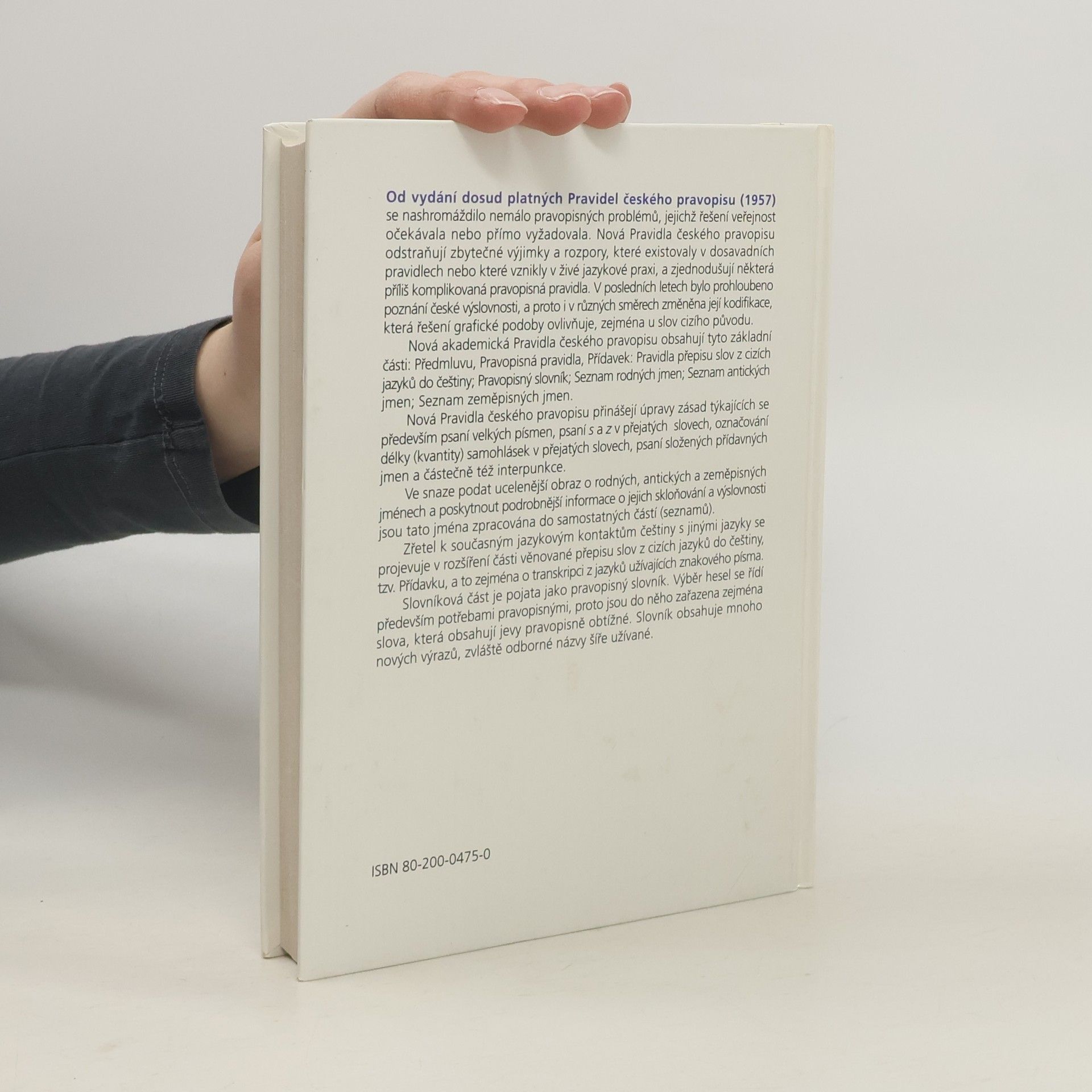 Nová Pravidla českého pravopisu obsahují tyto základní části: Předmluvu, Pravopisná pravidla, Přídavek - Pravidla přepisu slov z cizích jazyků do češtiny, Pravopisný slovník, Seznam rodných jmen, Seznam antických jmen, Seznam zeměpisných jmen. Přinášejí úpravy zásad týkajících se psaní velkých písmen, psaní s a z v přejatých slovech, označování délky samohlásek v přejatých slovech, psaní složených přídavných jmen a též interpunkce.