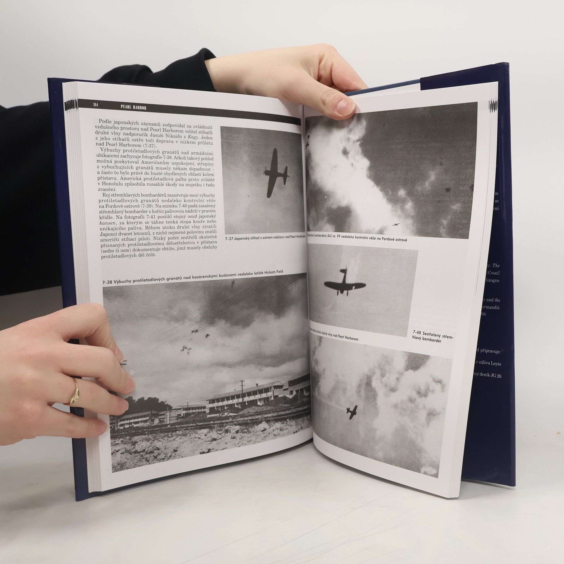 Výpravná obrazová publikace z dějiště jedné z přelomových událostí druhé světové války. Japonské přepadení americké základny Pearl Harbor na tichomořském ostrově Oahu bylo bezprostředním podnětem vstupu USA do války. Fotografie, zčásti opravdu unikátní, jsou rozděleny do osmi kapitol a zachycují celou osudnou akci od obrázků poklidného života amerických vojáků přes hořící lodě a letadla až ke zdevastované základně. Ani textový doprovod není slabinou a přehledně objasňuje průběh a dosah celé události. Kniha obsahuje 430 původních fotografií japonského útoku na námořní základnu USA Pearl Harbor v prosinci 1941.