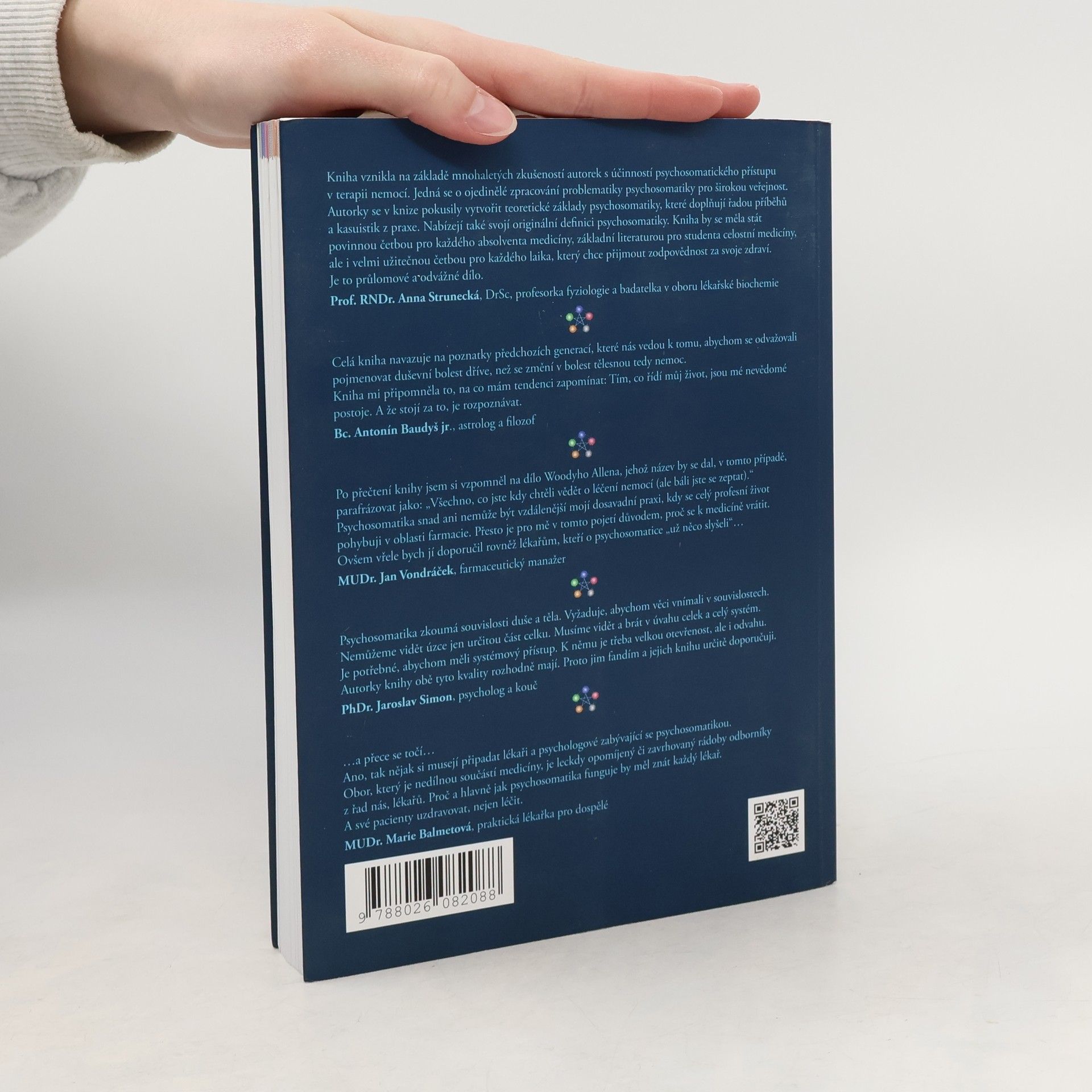 Vysvětluje co je psychosomatika a psychosomatické principy léčení. Kniha představuje 5 základních aspektů psychosomatického vnímání a jeho vztah k dalším oborům jako je západní i východní medicína, biologie, psychologie, fyzika i spirituální vědy. Kniha je členěna do 8 kapitol: Úvodní kapitola představuje základy psychosomatiky a systemického chápání dynamiky nemocí. Následujících 5 kapitol se věnuje pěti aspektům psychosomatického vnímání nemoci, tedy BIO-PSYCHO-SOCIO-SPIRITuálně-ENERGetickému modelu. 7. kapitola se zabývá vybranými tématy nemocí, nahlíženými z psychosomatického hlediska. 8. kapitola je zamyšlením nad rozdíly péče západní medicíny a psychosomatického přístupu. Mnoho příkladů z praxe představuje anonymní příběhy klientů využívajících psychosomatický přístupu v léčení. Obě zkušené autorky aktivně psychosomaticky pracují více jak 15 let a čerpají ze své bohaté praxe. Předmluvu napsal MUDr. Radkin Honzák.