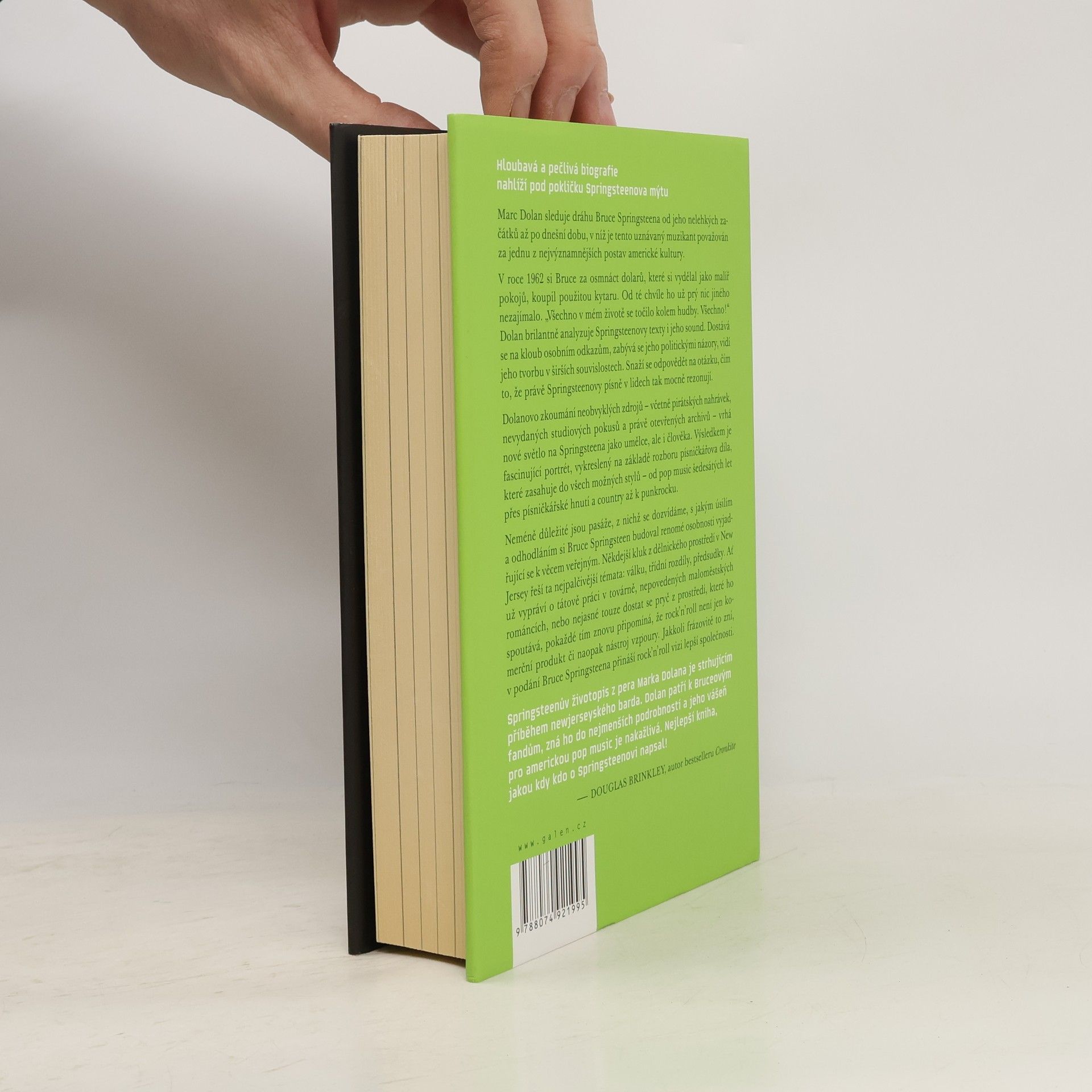 Hloubavá a pečlivě vypracovaná biografie nahlíží pod pokličku Springsteenova mýtu. Autor sleduje dráhu Bruce Springsteena od nelehkých začátků až po současnost, kdy je považován za jednu z nejvýznamnějších postav americké kultury. V roce 1962 si Bruce za osmnáct dolarů, které si vydělal jako malíř pokojů, koupil použitou kytaru, a od té doby se jeho život točil kolem hudby. Autor brilantně analyzuje Springsteenovy texty a sound, zkoumá osobní odkazy a politické názory, a snaží se odpovědět na otázku, proč jeho písně tak mocně rezonují. Dolanovo zkoumání neobvyklých zdrojů, včetně pirátských nahrávek a nevydaných studiových pokusů, vrhá nové světlo na Springsteena jako umělce i člověka. Výsledkem je fascinující portrét, který zachycuje jeho dílo zasahující do různých stylů – od pop music šedesátých let po punkrock. Důležité jsou také pasáže o úsilí a odhodlání, s jakým si Bruce budoval renomé osobnosti vyjadřující se k veřejným tématům. Jako kluk z dělnického prostředí v New Jersey se zabývá palčivými otázkami, jako jsou válka, třídní rozdíly a předsudky. Jeho příběhy o práci v továrně, neúspěšných románcích a touze uniknout z omezujícího prostředí připomínají, že rock'n'roll není jen komerční produkt, ale i vize lepší společnosti.