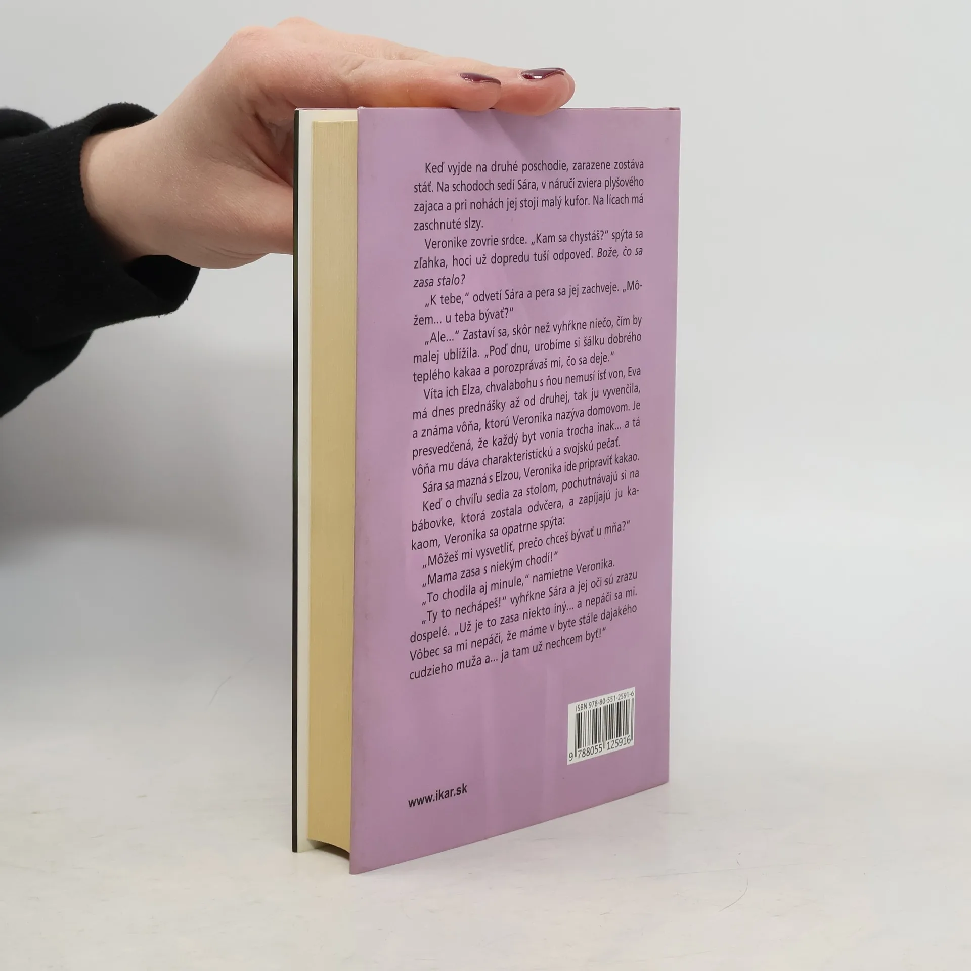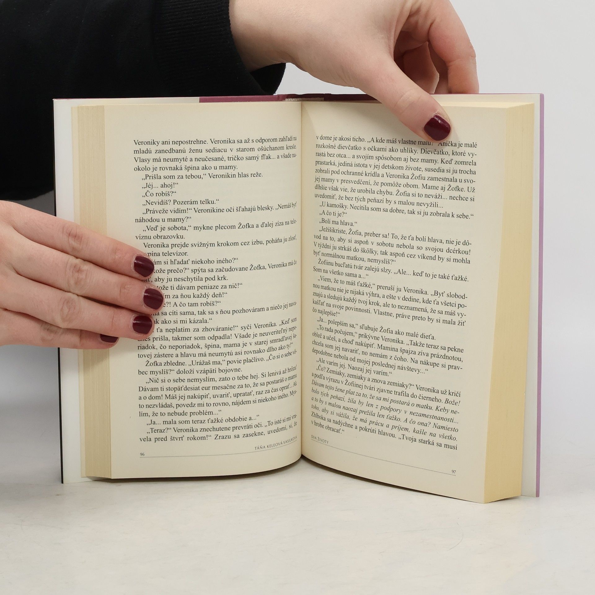 Najnovší autorkin román rozpráva príbeh dvoch žien, priateliek. Anna, prekladateľka, žije s manželom a dvomi dcérkami a na prvý pohľad jej nič nechýba. V skutočnosti je to však trocha inak... Veronika, učiteľka, žije s devätnásťročnou dcérou a vôbec ju netrápi, že v jej živote nie je nijaký muž. Život je však plný prekvapení...