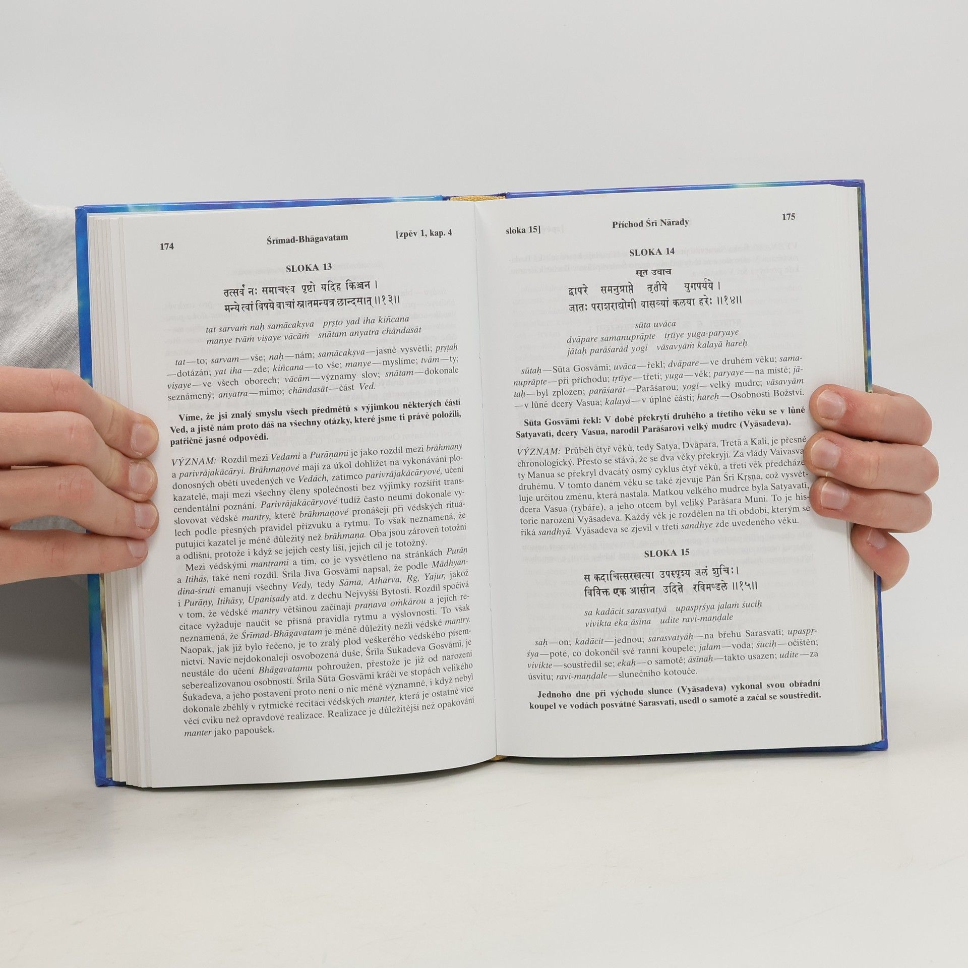 Nábožensko-filozofický text, který dává nahlédnout do indického duchovního odkazu. S původními sanskrtskými texty, přepisem do latinského písma, českými synonymy, překlady a podrobnými výklady.