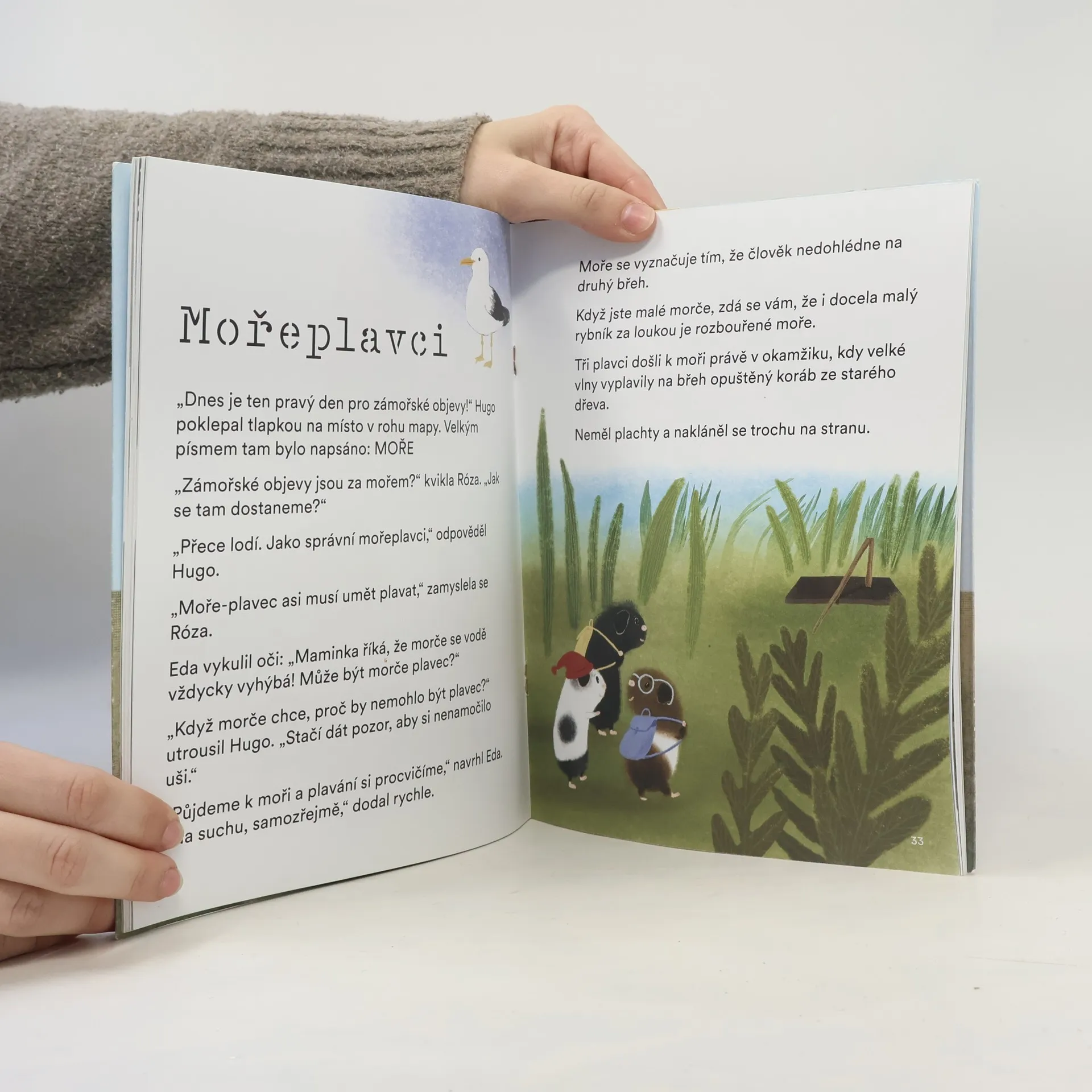 Příhody tří nebojácných morčat, která se vydávají do světa za dobrodružstvím. Bohatě ilustrovaný příběh koncipovaný jako první čtení. Morče Eda, morče Hugo a morče Róza zase něco chystají, nedají si pokoj. Jsou totiž jiná než ostatní morčata. Zatímco podle jejich maminek, tatínků a babiček je morče milé, hodné, hloupé a bojácné zvířátko s hladkou srstí, Eda je chytrý, Hugo statečný a Róza je obojí. Potkali se jednoho dne v rohu ohrádky a stali se přáteli. Nakladatelská anotace. Kráceno.