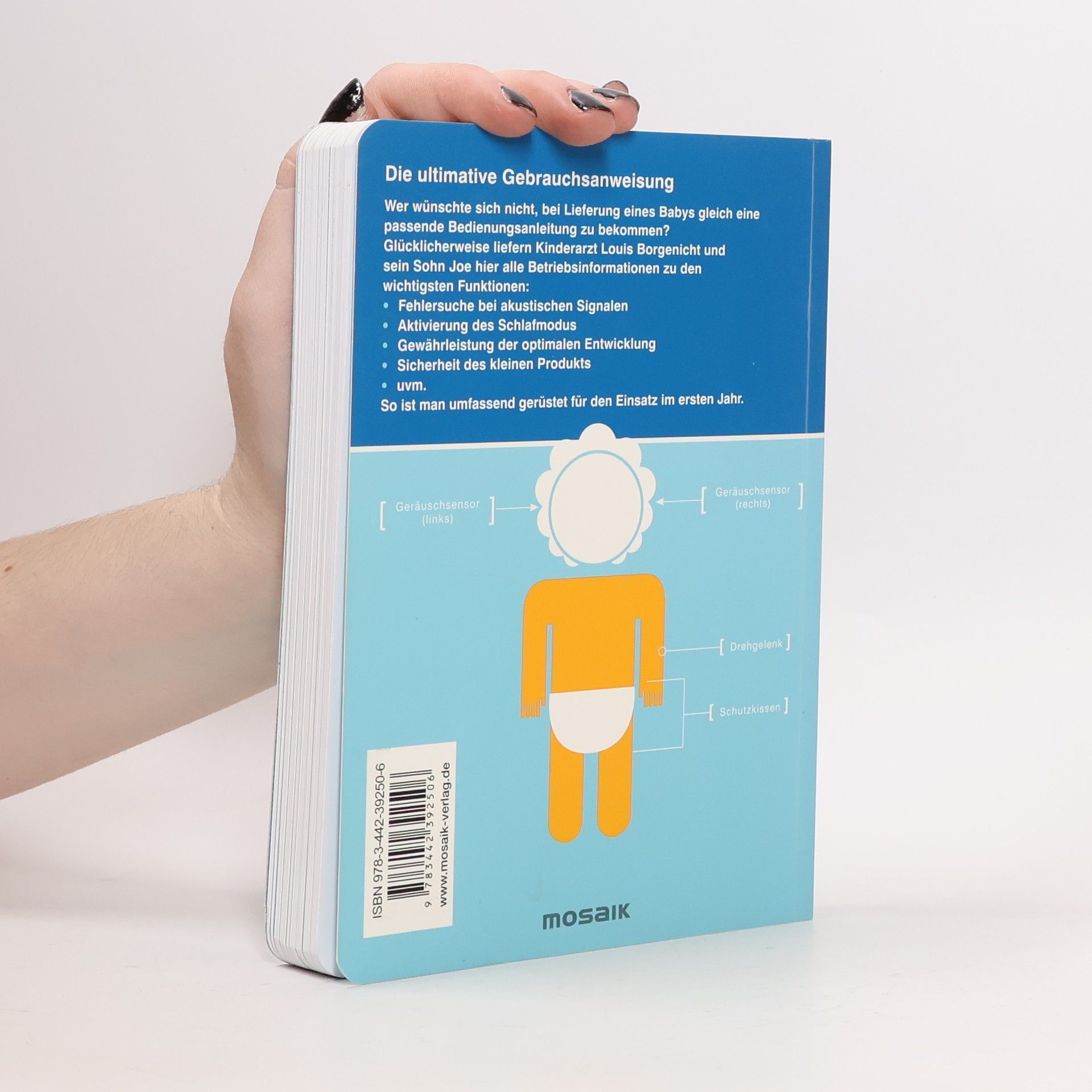 Glückwunsch! Bitte lesen sie diese Anleitung vor Inbetriebnahme gründlich durch. Gratulation, ein Baby! Doch leider hat man das kleine Wunder an Design und Funktionalität ohne entsprechende Gebrauchsanweisung geliefert. Wie baut man nun die Verbindung zu der Neuanschaffung auf, gestaltet die Fehlersuche bei akustischen Signalen, programmiert den Fütterungsprozess oder aktiviert den dringend nötigen Schlafmodus? Auf was muss man bei der Instandhaltung besonders achten, wie gewährleistet man die optimale Entwicklung der Applikationen und sorgt für die Sicherheit des geliebten kleinen Produkts? Glücklicherweise hilft „Baby – Betriebsanleitung“ hier weiter und gibt auf alle drängenden Fragen mit viel augenzwinkerndem Humor und mit witzigen Schaubildern umfassend Antwort.
