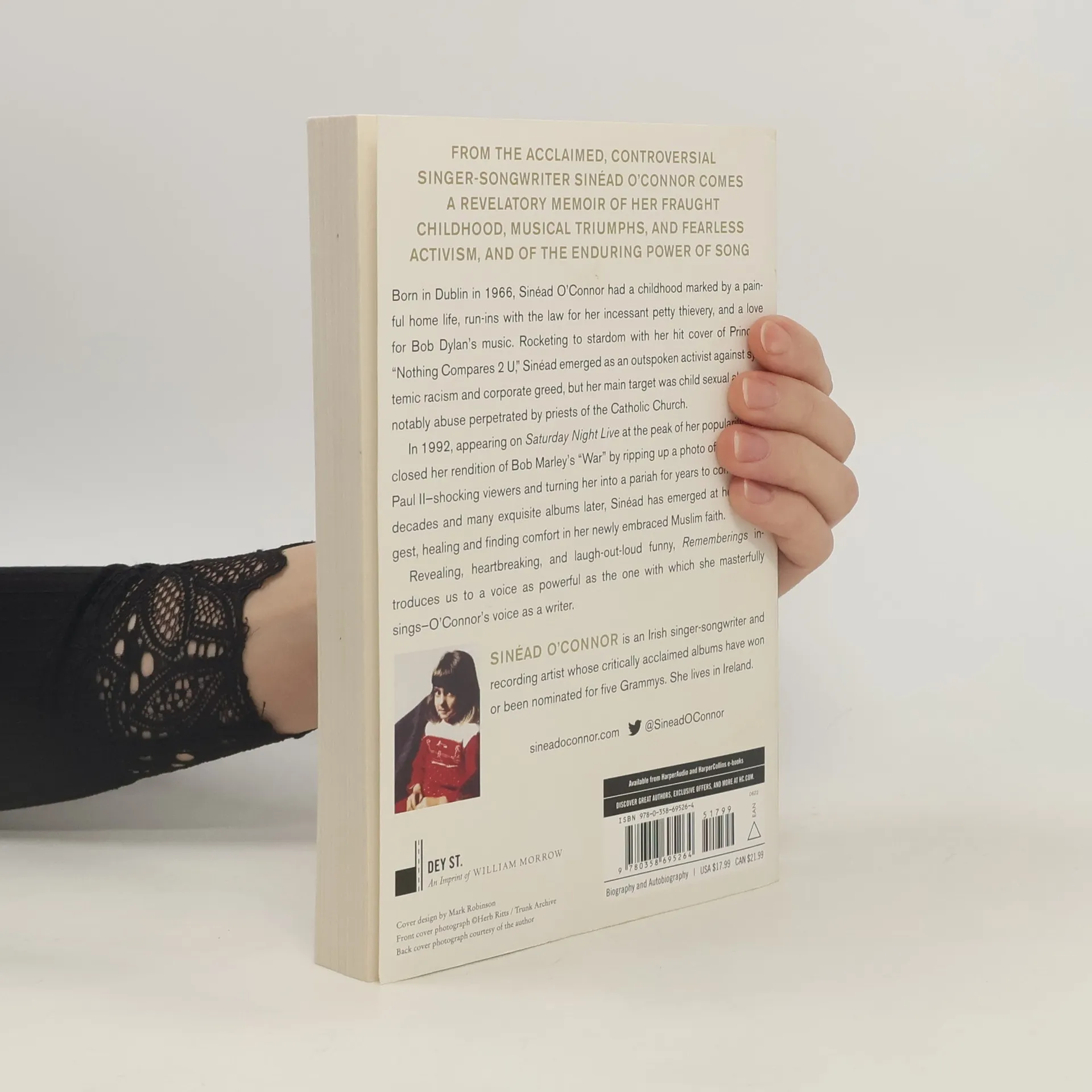 From the acclaimed, controversial singer-songwriter Sinéad O'Connor comes a revelatory memoir of her fraught childhood, musical triumphs, struggles with illness, and of the enduring power of song. Blessed with a singular voice and a fiery temperament, Sinéad O'Connor rose to massive fame in the late 1980s and 1990s with a string of gold records. By the time she was twenty, she was world-famous--living a rock-star life out loud. From her trademark shaved head to her 1992 appearance on Saturday Night Live when she tore up Pope John Paul II's photograph, Sinéad has fascinated and outraged millions. In Rememberings, O'Connor recounts her painful tale of growing up in Dublin in a dysfunctional, abusive household. Inspired by a brother's Bob Dylan records, she escaped into music. She relates her early forays with local Irish bands; we see Sinéad completing her first album while eight months pregnant, hanging with Rastas in the East Village, and soaring to unimaginable popularity with her cover of Prince's "Nothing Compares 2 U." Intimate, replete with candid anecdotes and told in a singular form true to her unconventional career, Sinéad's memoir is a remarkable chronicle of an enduring and influential artist.