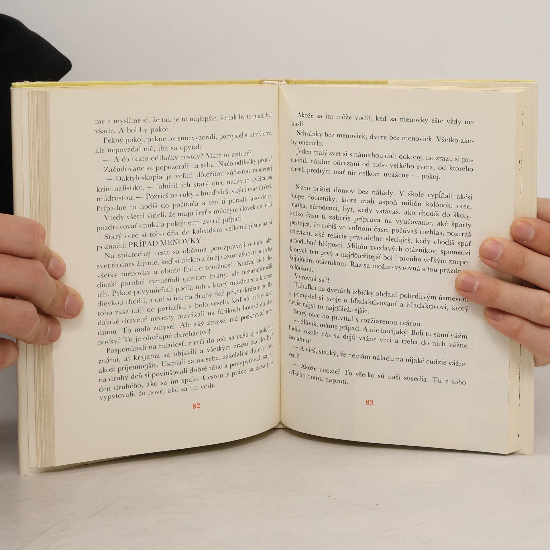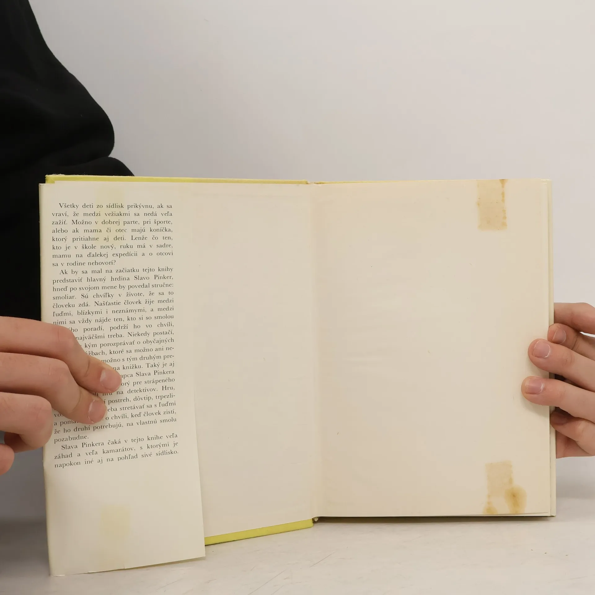 Ak by sa mal na začiatku tejto knihy predstaviť hlavný hrdina Slavo Pinker, hneď po svojom mene by povedal stručne: Sú chvíľky v živote,že sa to človeku zdá. Našťastie človek žije medzi ľuďmi, blízkymi i neznámymi, a medzi nimi sa vždy nájde ten,kto si so smolou druhého poradí, podrží hovo chvíli, keď to najväčšmi treba. Niekedy postačí, ak sa je s kým porozprávať o obyčajných veciach i túžbach, ktoré sa možno ani nesplnia. Inokedy možno s tým druhým prežiť i čosi, z čoho je na knižku. Taký je aj príbeh obyčajného chlapca Slava Pinkera a jeho starého otca, ktorý pre strápeného vnuka vymyslí hru na detektívov. Hru, pri ktorej sa cibrí postreh, dôvtip, trpezlivosť, ale hlavne treba stretávať sa s ľuďmi a pomáhať im. vo chvíli, keď človek zistí,že ho druhí potrebujú,na vlastnú smolu pozabudne.