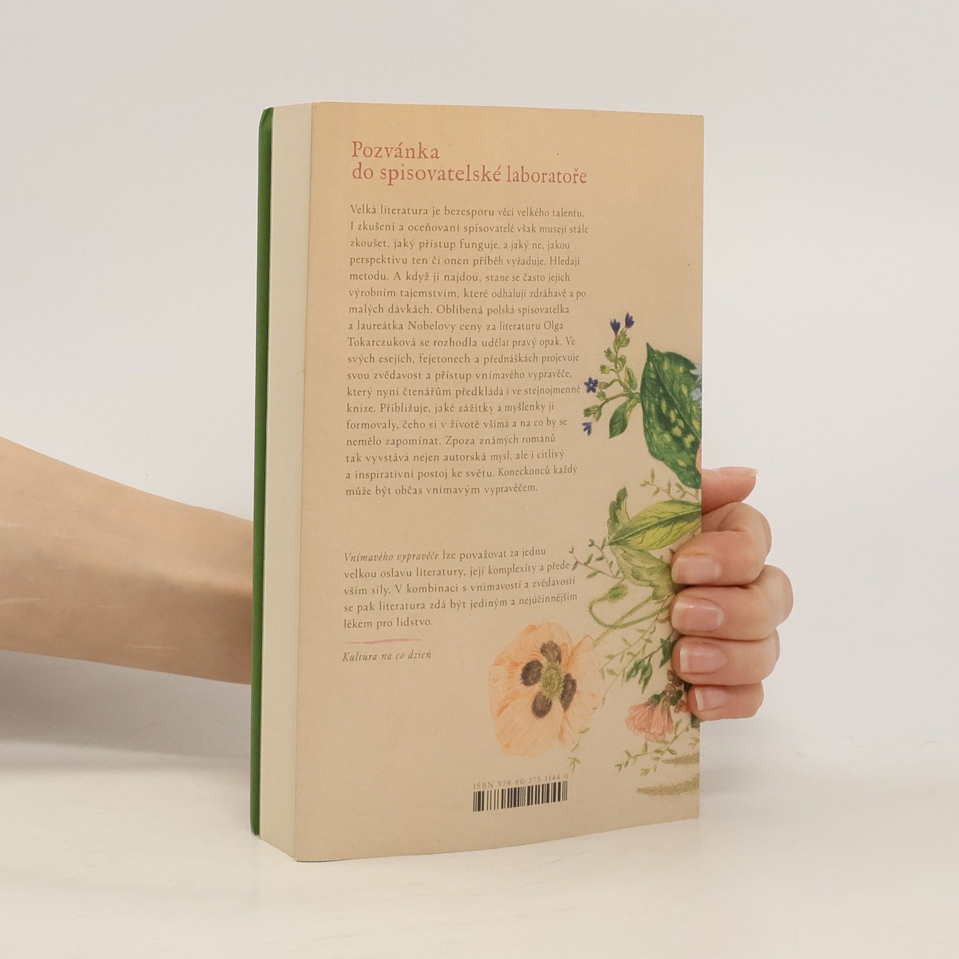Pozvánka do spisovatelské laboratoře polské prozaičky a nobelistky Olgy Tokarczukové Velká literatura je bezesporu věcí velkého talentu. I zkušení a oceňovaní spisovatelé však musí stále zkoušet, jaký přístup funguje a jaký ne, jakou perspektivu si ten či onen příběh vyžaduje. Hledají metodu. A když ji najdou, stane se často jejich výrobním tajemstvím, které odhalují jen zdráhavě a po kouskách. Oblíbená polská spisovatelka a laureátka Nobelovy ceny za literaturu Olga Tokarczuková se už dávno rozhodla udělat opak. Ve svých esejích, fejetonech a přednáškách odhaluje svou zvědavost a přístup vnímavého vypravěče, který nyní čtenářům předkládá i ve stejnojmenné knize. Přiznává, jaké zážitky a myšlenky pro ni byly formativní, čeho si v životě všímá a na co by se nemělo zapomínat. Pozvolna tak před námi vyvstává nejen autorská mysl zpoza známých románů, ale také citlivý a inspirativní přístup ke světu. Koneckonců každý může být občas vnímavým vypravěčem.