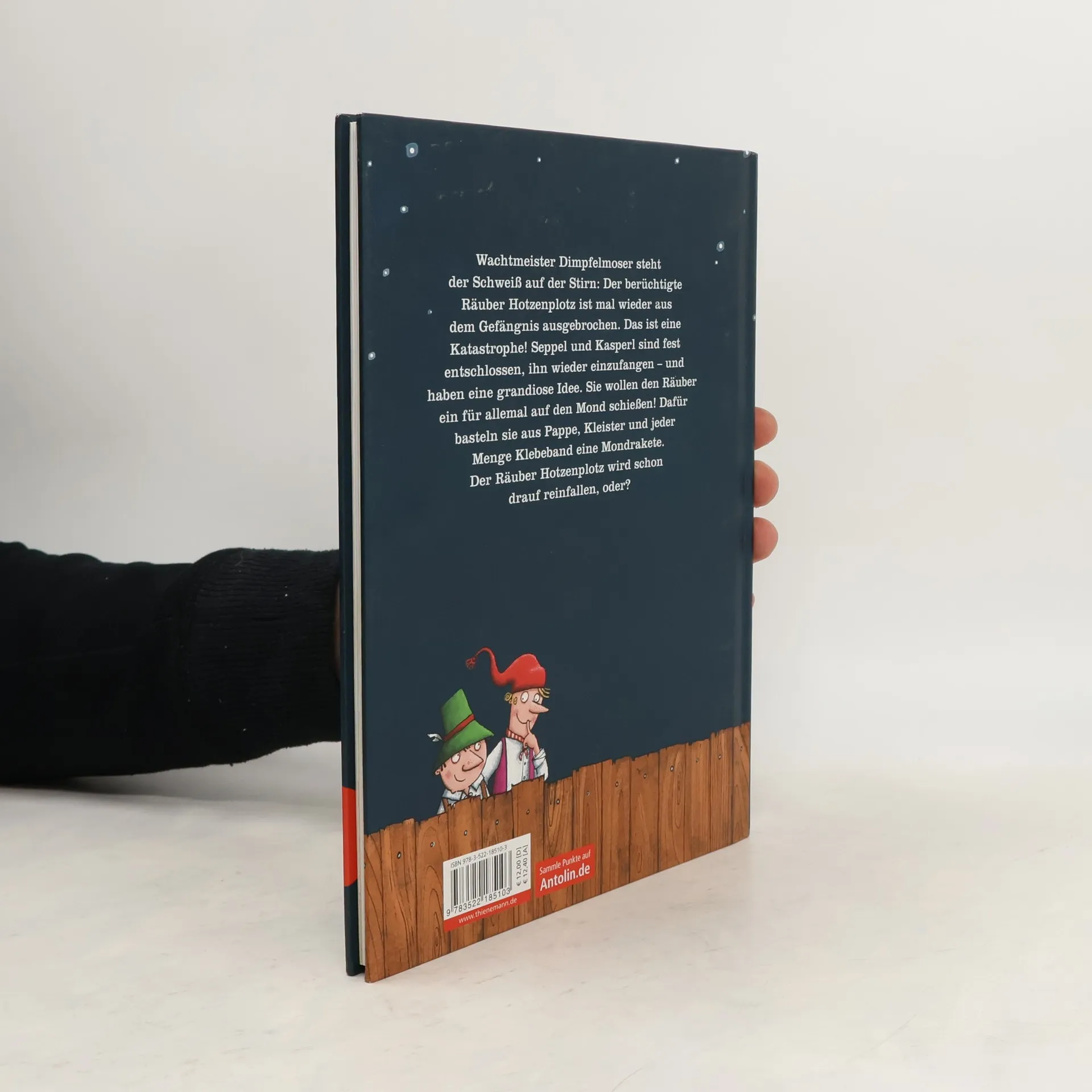 Ein neues Abenteuer vom Räuber Hotzenplotz aus den Anfängen seiner Räuberkarriere für Jungen und Mädchen ab 6 Jahren. Ursprünglich von Otfried Preußler als Puppenspiel geschrieben, wiederentdeckt und nun zum Kinderbuch ergänzt von seiner Tochter Susanne Preußler-Bitsch. Buch zum Vor- und Selbstlesen für die Grundschule, mit vielen bunten Illustrationen. Wachtmeister Dimpfelmoser steht der Schweiß auf der Stirn. Grund dafür: Der berüchtigte Räuber Hotzenplotz ist mal wieder ausgebrochen. Was für eine Katastrophe! Denn jeder weiß: Der Räuber Hotzenplotz ist der gefährlichste Räuber im ganzen Landkreis. Seppel und Kasperl sind fest entschlossen, den Räuber wieder einzufangen – und haben eine grandiose Idee. Sie wollen ihn ein für allemal auf den Mond schießen! Alle Bände im Überblick: Band 1: Der Räuber Hotzenplotz Band 2: Neues vom Räuber Hotzenplotz Band 3: Schluss mit der Räuberei (vormals „Hotzenplotz 3“) Der Räuber Hotzenplotz und die Mondrakete