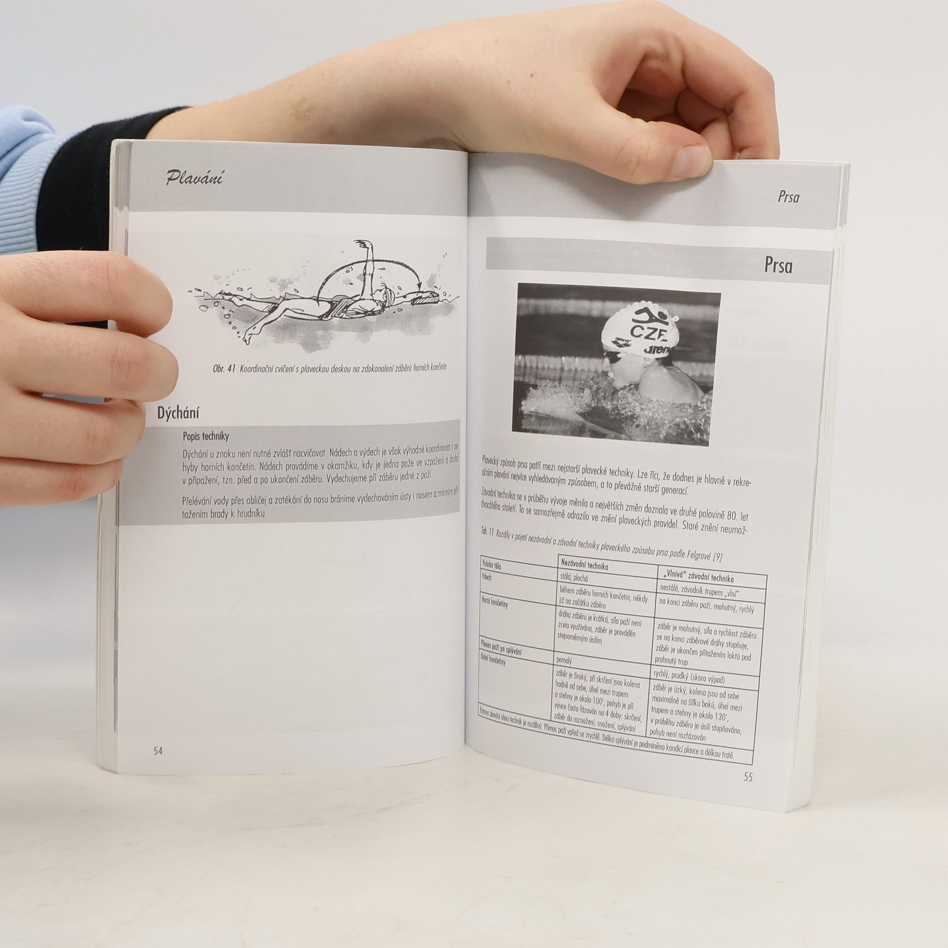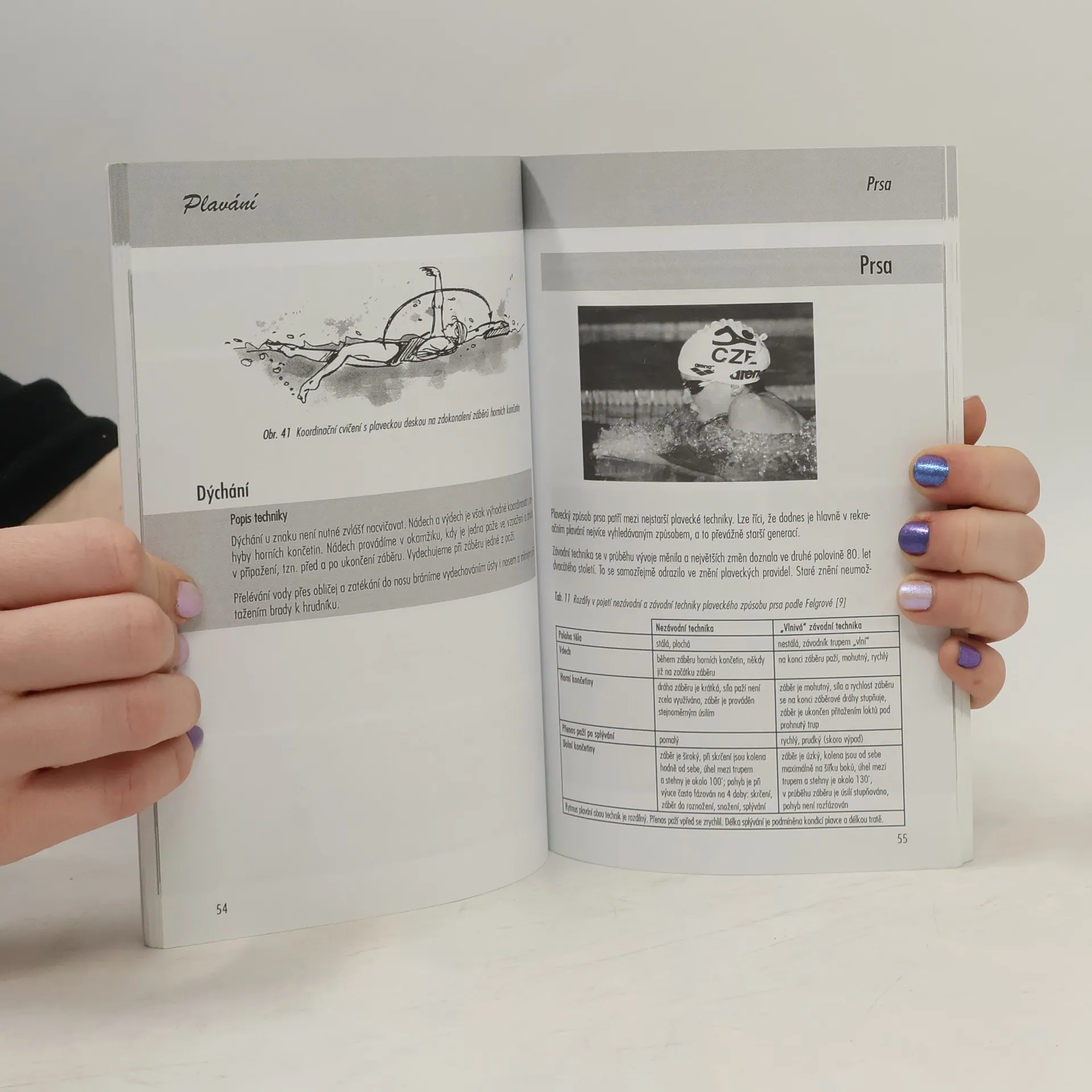 Popis čtyř základních plaveckých způsobů, postupu výuky, plaveckých dovedností (např. správné dýchání, skoky do vody, orientace ve vodě), vybavení plavce a bezpečného potápění se základní výstrojí.