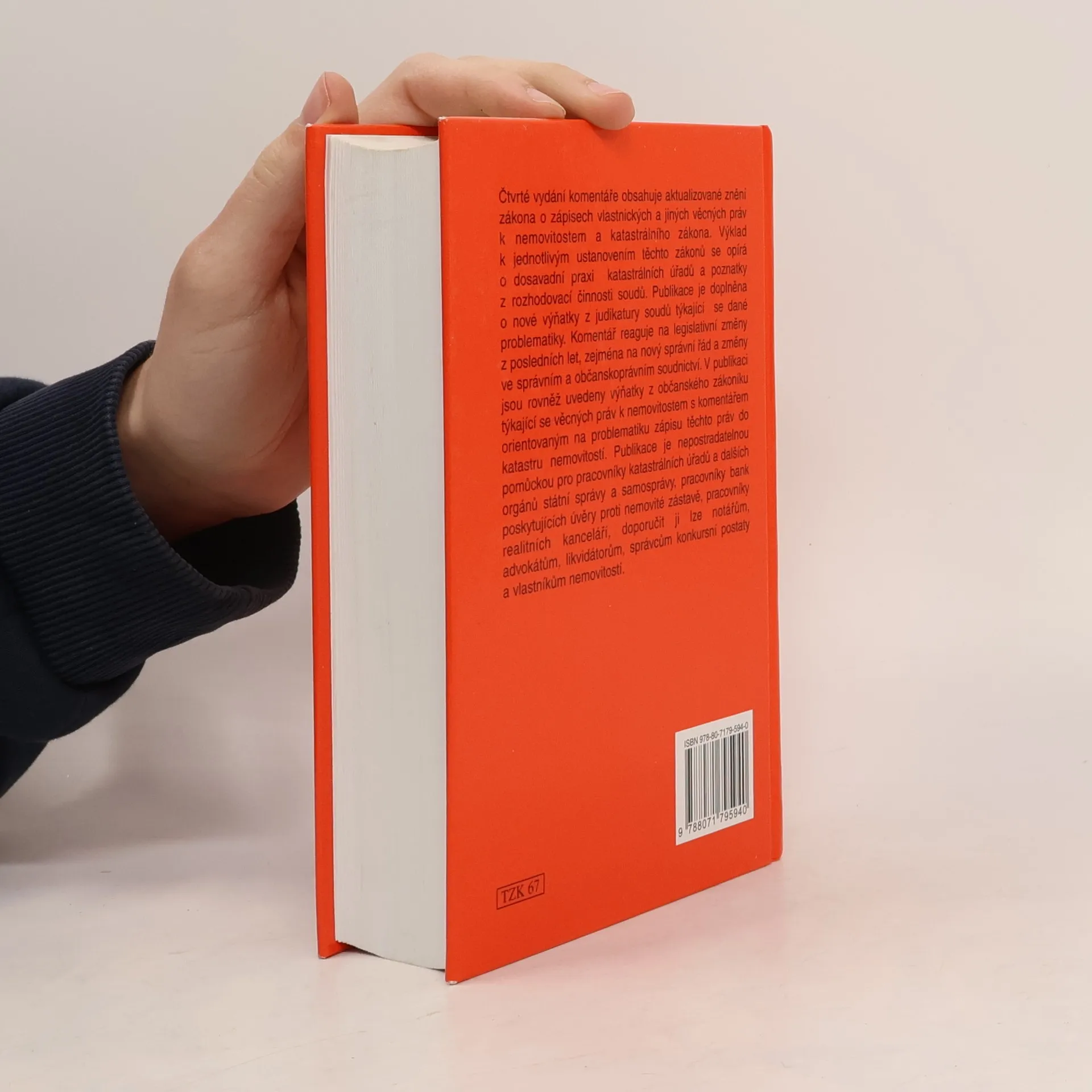 Čtvrté vydání komentáře obsahuje aktualizované znění zákona o zápisech vlastnických a jiných věcných práv k nemovitostem a katastrálního zákona. Výklad k jednotlivým ustanovením těchto zákonů se opírá o dosavadní praxi katastrálních úřadů a poznatky z rozhodovací činnosti soudů. Publikace je doplněna o nové výňatky z judikatury soudů týkající se dané problematiky. Komentář reaguje na legislativní změny z posledních let, zejména na nový správní řád a změny ve správním a občanskoprávním soudnictví. V publikaci jsou rovněž uvedeny výňatky z občanského zákoníku týkající se věcných práv k nemovitostem s komentářem orientovaným na problematiku zápisu těchto práv do katastru nemovitostí. Publikace je nepostradatelnou pomůckou pro pracovníky katastrálních úřadů a dalších orgánů státní správy a samosprávy, pracovníky bank poskytujících úvěry proti nemovité zástavě, pracovníky realitních kanceláří, doporučit ji lze notářům, advokátům, likvidátorům, správcům konkursní podstaty a vlastníkům nemovitostí.
