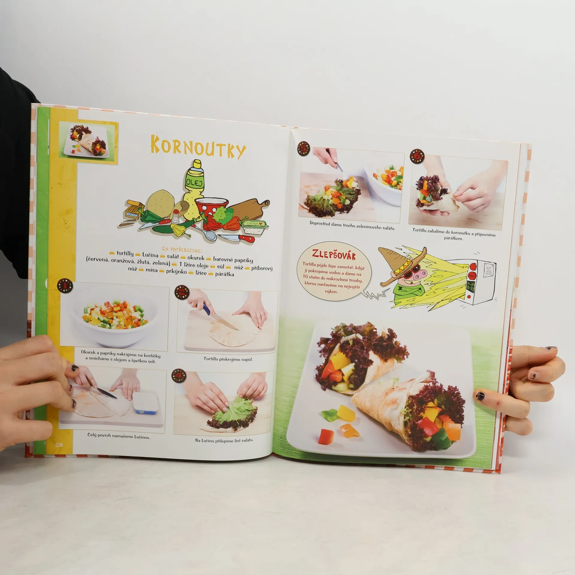 Tato kuchařská kniha plná barevných fotografií, vtipných ilustrací a napínavých komiksů je určena všem dětem, které se zajímají o kuchařské umění a chtěly by svým kamarádům, rodičům nebo prarodičům připravit zajímavé pohoštění. Recepty v knize zahrnují jak pokrmy slané, tak isladkosti a nápoje.