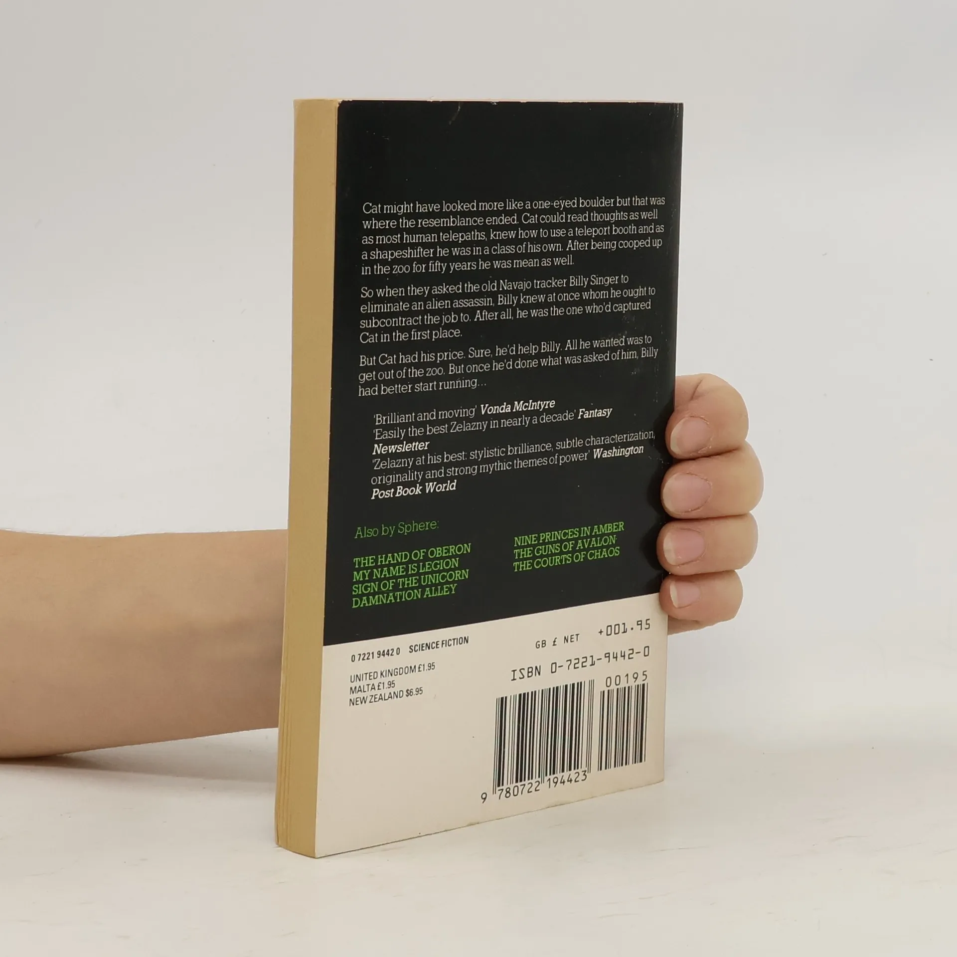Cat might ave looked more like a one-eyed boulder but that was where the resemblance ended. Cat could read thoughts as well as most human telepaths, knew how to use a teleport booth and as a shapeshifter he was in a class of his own. After being cooped up in the zoo for fifty years he was mean as well. So when they asked the old Navajo tracker Billy Singer to eliminate an alien assassin, Billy knew at once whom he ought to subcontract the job to. After all, he was the one who'd captured Cat in the first place. But Cat had his price. Sure, he'd help Billy. All he wanted was to get out of the zoo. But once he'd done what was asked of him, Billy had better start running. Brilliant and moving - Vonda Mcintyre Easily the best Zelazny in nearly a decade - Fantasy Newsletter Zelazny at his best: stylistic brilliance, subtle characterization, originality and strong mythic themes of power - Washington Post Book World