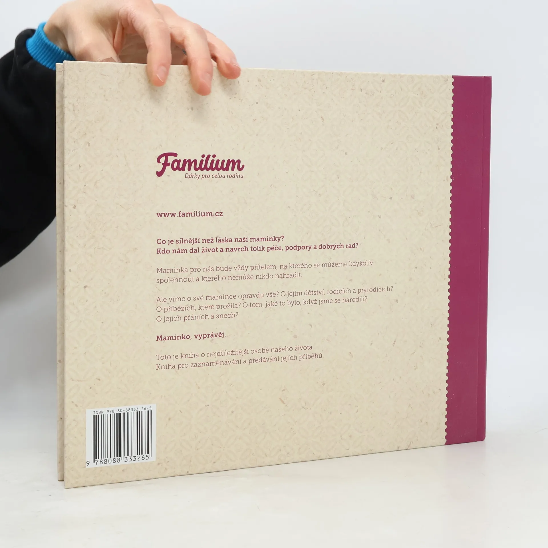 Kniha Maminko, vyprávěj je originálním dárkem pro vaši maminku. Jedná se o vyplňovací knihu, kde maminka může zachytit příběhy ze svého života. Kniha obsahuje řadu pečlivě vybraných otázek, například o maminčině dětství, o jejích rodičích a prarodičích, o tom, kam chodila do školy, s kým se kamarádila nebo jaké to bylo, když se jí narodily děti. Najdete zde ale i dotazy týkající se jejích snů, zálib nebo životních zkušeností. Kniha navazuje na úspěšný bestseller Babičko, vyprávěj. Svým obsahem a designem ale cílí na mladší, maminkovskou generaci. Uvnitř najdete mnoho doprovodných obrázků, které mamince pomohou vybavit si zážitky z mládí. Kdo si vzpomene na mončičáka, céčka, dívčí památníčky, walkmana nebo časopis Bravo? A na dobu, kdy neexistovaly autosedačky, děti se nemusely v autě vzadu poutat a magnetofonové kazety se převíjely tužkou? „Maminko, vyprávěj“ je vyjádřením zájmu o hlubší poznání života vaší maminky a zároveň i poděkováním za péči a podporu té nejdůležitější osoby ve vašem životě. Vyplněné příběhy se stanou cenným pokladem pro celou rodinu a kniha bude inspirací pro další povídání o maminčiných zážitcích.