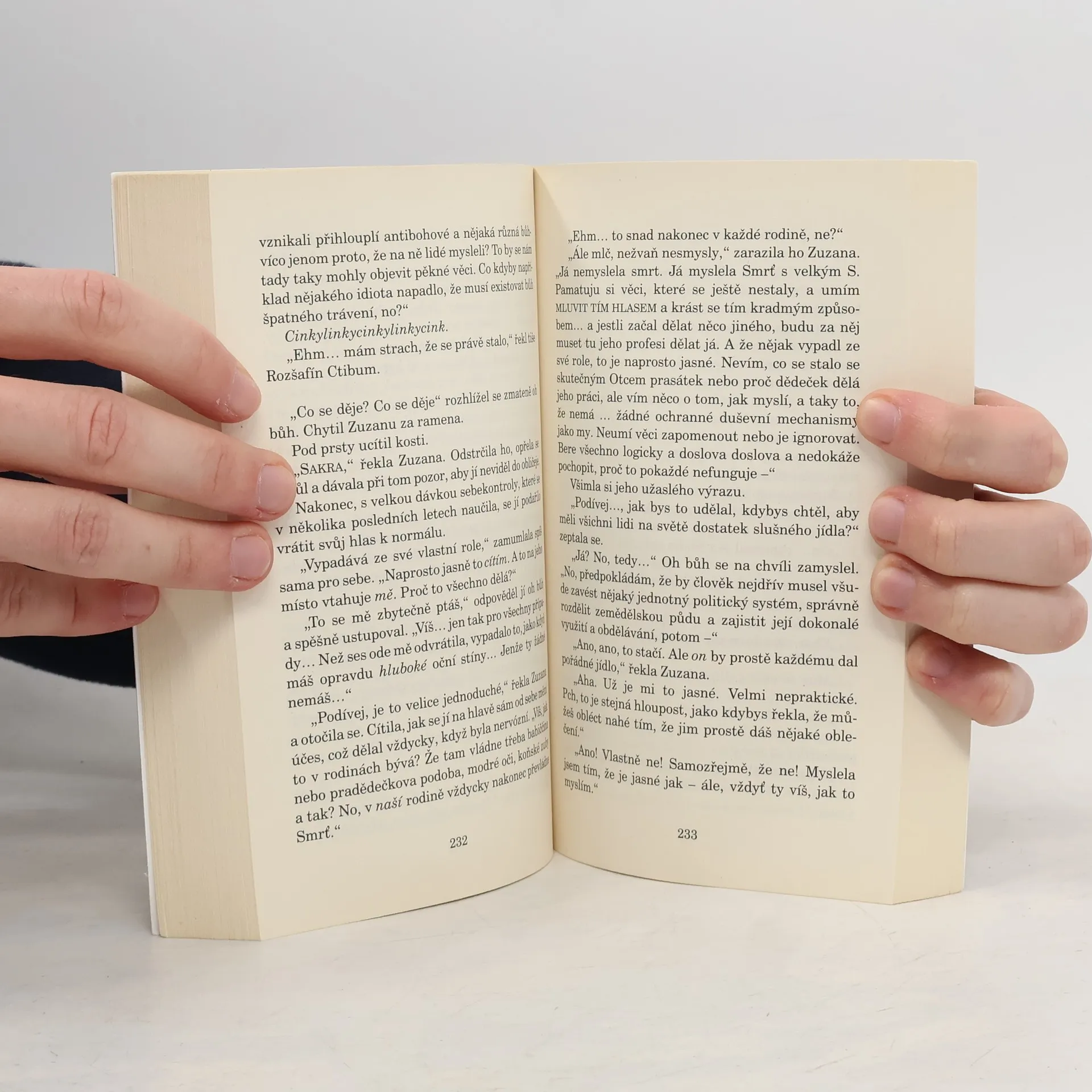 Nadešel předvečer Svátku prasečí hlídky. * Je nápadný klid. * Sněhu je dost, červenek celá hejna, ozdobený stromeček za každým oknem. Je však absolutní nedostatek velkého tlustého muže v červenobílém oblečení, který doručuje hračky... * Ten zmizel. Dětská vychovatelka Zuzana ho musí najít nejpozději do rána, jinak nejen, že nikdo nedostane dárky, ale nevyjde slunce. A naneštěstí jsou jejími jedinými pomocníky havran s oční vadou, krysí Smrť a bůh kocoviny. * A co je ještě horší, někdo leze komínem. Není to bába. Tentokrát má místo kosy pytel, ale je na něm něco smrtelně povědomého. * HO. HO. HO. * Šíří se podivné zvěsti. * A jestli se vám navíc kýve nějaký zub, buďte opatrní... Úžasná Zeměplocha, kniha 19., přeložil Jan Kantůrek.