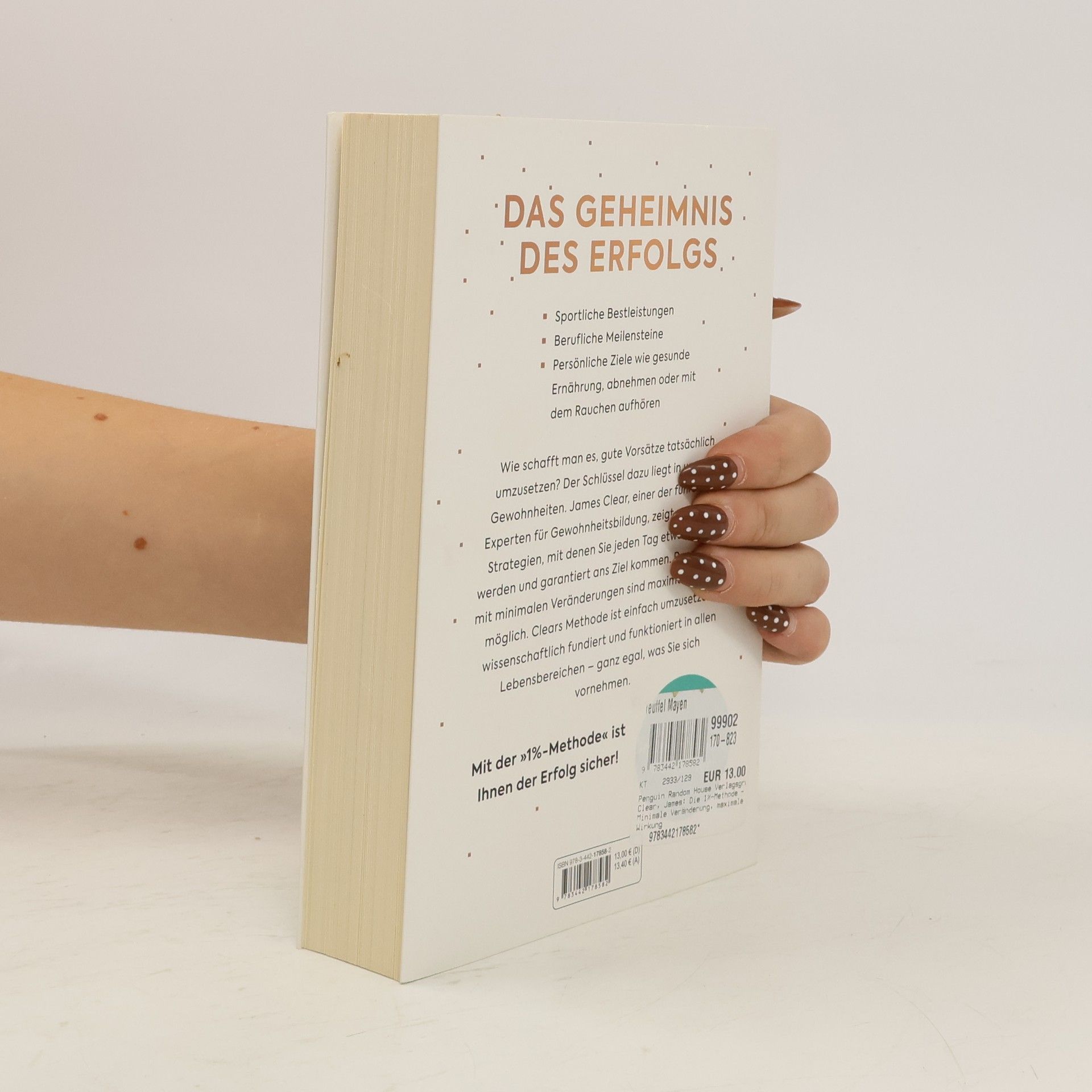 Das Geheimnis des Erfolgs: »Die 1%-Methode«. Sie liefert das nötige Handwerkszeug, mit dem Sie jedes Ziel erreichen. James Clear, erfolgreicher Coach und einer der führenden Experten für Gewohnheitsbildung, zeigt praktische Strategien, mit denen Sie jeden Tag etwas besser werden bei dem, was Sie sich vornehmen. Seine Methode greift auf Erkenntnisse aus Biologie, Psychologie und Neurowissenschaften zurück und funktioniert in allen Lebensbereichen. Ganz egal, was Sie erreichen möchten – ob sportliche Höchstleistungen, berufliche Meilensteine oder persönliche Ziele wie mit dem Rauchen aufzuhören –, mit diesem Buch schaffen Sie es ganz sicher.