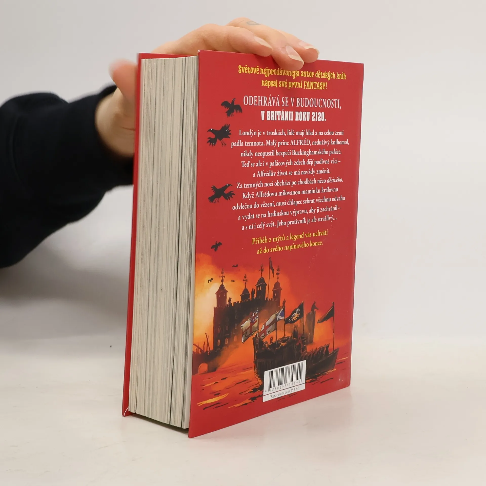 Světově nejprodávanější autor dětských knih napsal své první fantasy! Odehrává se v Británii o sto let později, tedy v roce 2120. Londýn je v troskách, lidé mají hlad a na celou zemi padla temnota. Malý princ Alfréd, neduživý knihomol, nikdy neopustil bezpečí Buckinghamského paláce. Teď se ale i v palácových zdech dějí podivné věci - a Alfrédův život se má navždy změnit. Za temných nocí obchází po chodbách něco strašlivého. Když Alfrédovu milovanou maminku královnu odvlečou do Toweru, musí chlapec sebrat všechnu odvahu a vydat se na hrdinskou výpravu, aby ji zachránil - a s ní i celý svět. Jeho protivník je ale strašlivý. Příběh z mýtů a legend vás uchvátí až do svého napínavého konce. . Knihu opět ilustroval báječný Tony Ross.