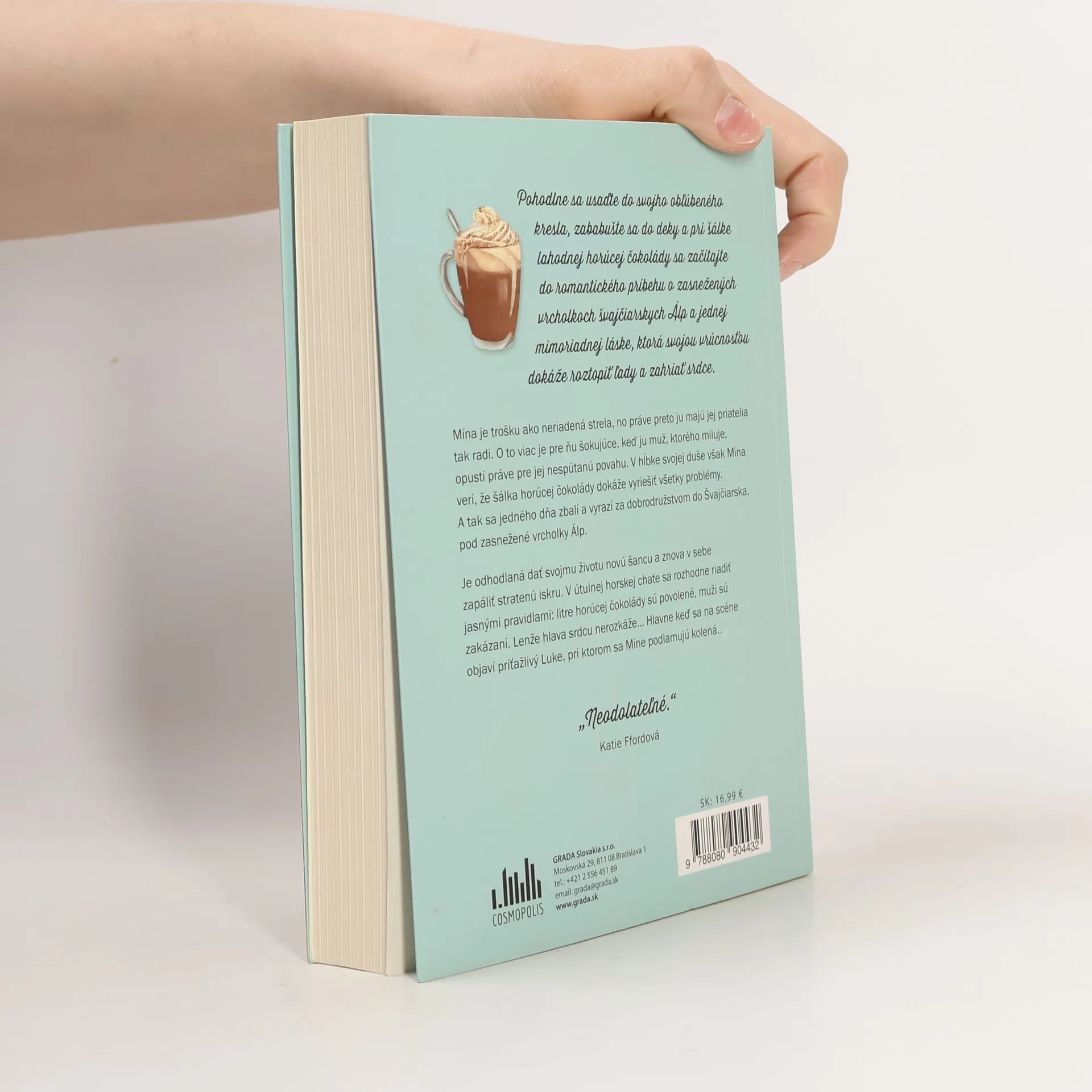 Pohodlne sa usaďte do svojho obľúbeného kresla, zababušte sa do deky a pri šálke lahodnej horúcej čokolády sa začítajte do romantického príbehu o zasnežených vrcholkoch švajčiarskych Álp a jednej mimoriadnej láske, ktorá svojou vrúcnosťou dokáže roztopiť ľady a zahriať srdce. Mína je trošku ako neriadená strela, no práve preto ju majú jej priatelia tak radi. O to viac je pre ňu šokujúce, keď ju muž, ktorého miluje, opustí práve pre jej nespútanú povahu. V hĺbke svojej duše však Mína verí, že šálka horúcej čokolády dokáže vyriešiť všetky problémy. A tak sa jedného dňa zbalí a vyrazí za dobrodružstvom do Švajčiarska, pod zasnežené vrcholky Álp. Je odhodlaná dať svojmu životu novú šancu a znova v sebe zapáliť stratenú iskru. V útulnej horskej chate sa rozhodne riadiť jasnými pravidlami: litre horúcej čokolády sú povolené, muži sú zakázaní. Lenže hlava srdcu nerozkáže... Hlavne keď sa na scéne objaví príťažlivý Luke, pri ktorom sa Míne podlamujú kolená...