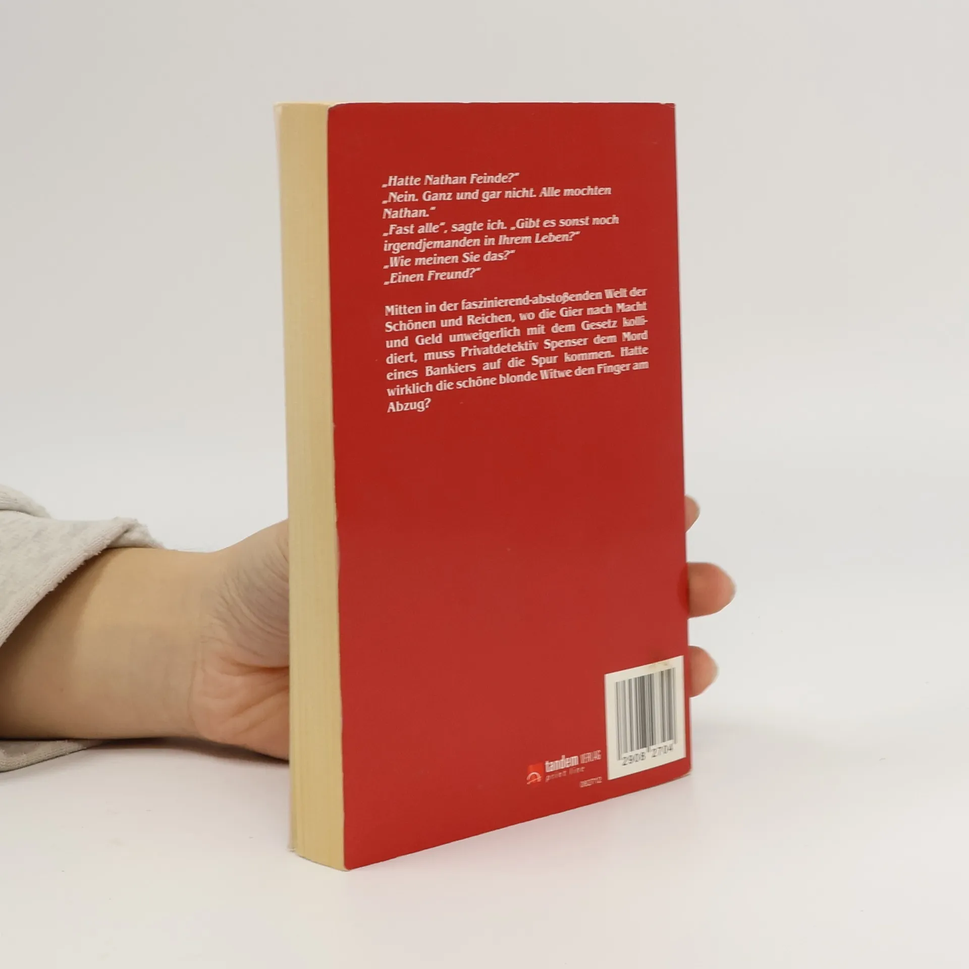 Der Bankier Nathan Smith wird eines Abends tot in seinem Bett aufgefunden. Von der Tatwaffe fehlt jede Spur und alles spricht dafür, dass seine junge Frau Mary den Finger am Abzug hatte. Dank Nathans Millionen kann sie sich an ein renommiertes Anwaltsbüro wenden. Doch selbst ihre Anwältin zweifelt an der Unschuld der blonden Witwe und engagiert den Privatdetektiv Spenser, um den Fall aufzuklären. Spenser hat zunächst keine heiße Spur, bis plötzlich eine Frau, die bei Nathan Smiths Bank entlassen wurde, tot aufgefunden wird. Er stößt bei seinen weiteren Ermittlungen auf ein bislang gut gehütetes Geheimnis in Marys Vergangenheit. Mit seinen knappen, frischen Dialogen und den scharf gezeichneten Charakteren ist „Die blonde Witwe“ ein weiterer Triumph im Werk von Robert B. Parker, der in den USA ein Bestseller-Autor ist. Seit seinem Debüt „Spenser und das gestohlene Manuskript“ im Jahr 1973 sind über dreißig Spenser- Krimis erschienen, die international sehr erfolgreich sind. In den USA lief viele Jahre die erfolgreiche Fernsehserie „Spenser“ mit Robert Urich in der Hauptrolle.