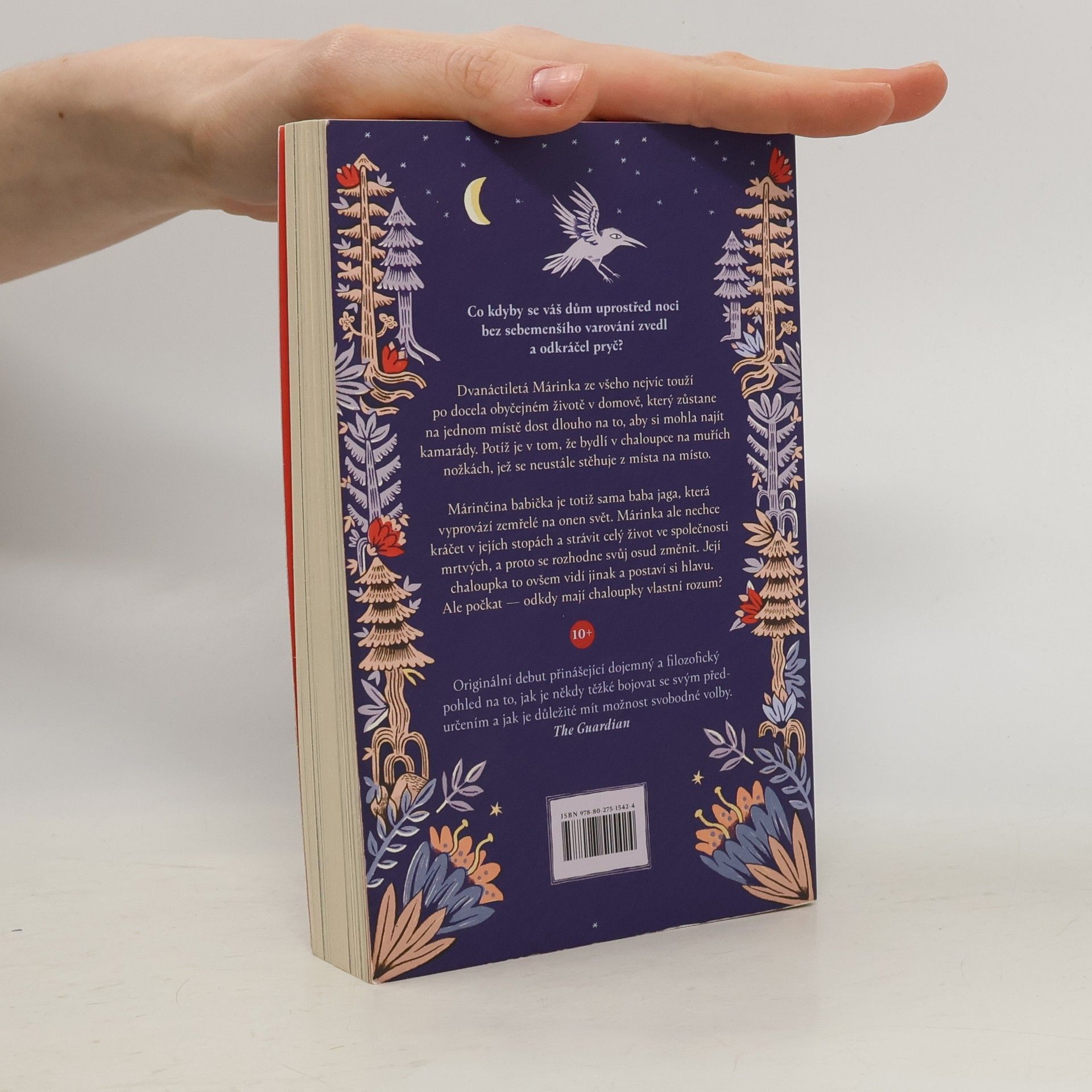 Co kdyby se váš dům uprostřed noci bez sebemenšího varování zvedl a odkráčel pryč? Dvanáctiletá Márinka ze všeho nejvíc touží po docela obyčejném životě v domově, který zůstane na jednom místě dost dlouho na to, aby si mohla najít kamarády. Potíž je v tom, že bydlí v chaloupce na muřích nožkách, která se neustále stěhuje z místa na místo. Márinčina babička je totiž sama baba jaga, která doprovází zemřelé na onen svět. Márinka ale nechce kráčet v jejích stopách a strávit celý život ve společnosti mrtvých, a proto se rozhodne svůj osud změnit. Její chaloupka to ovšem vidí jinak a postaví si hlavu. Ale počkat — odkdy mají chaloupky vlastní rozum?