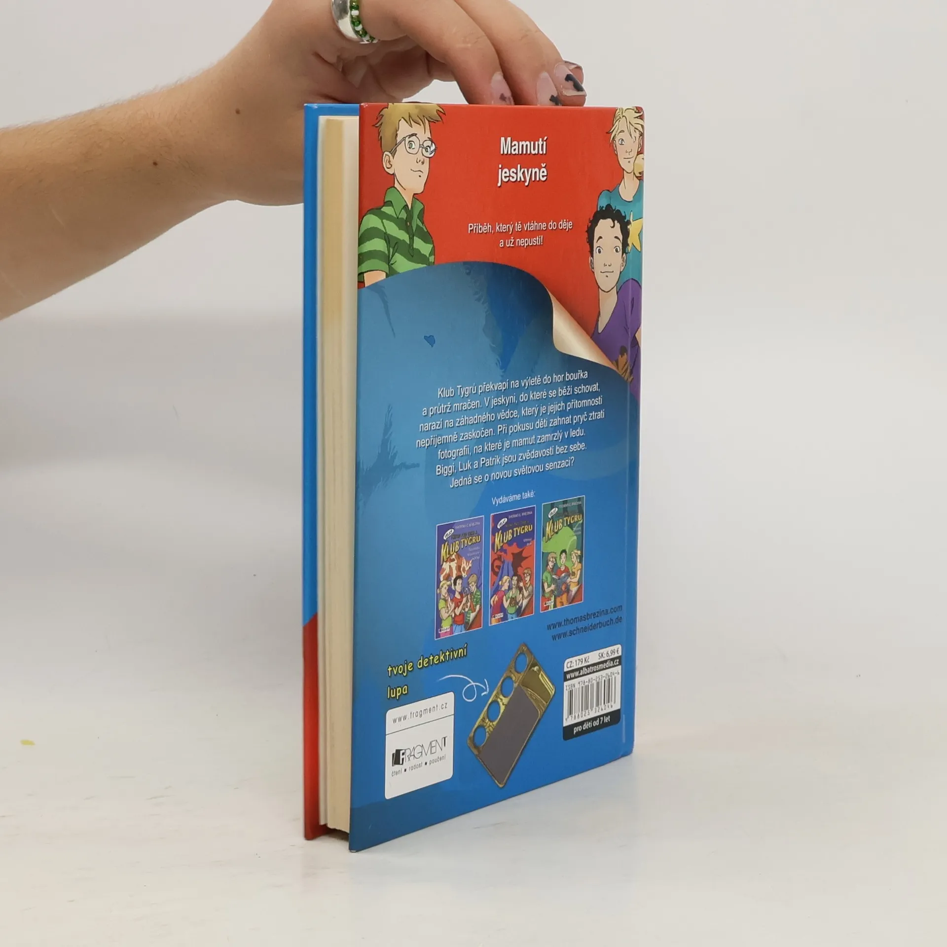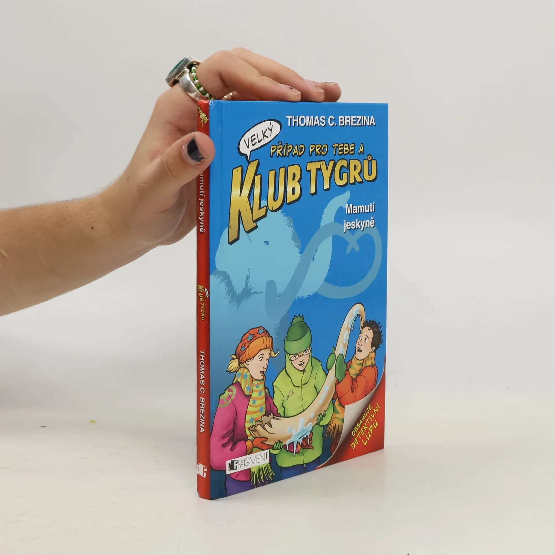Klub Tygrů pro mladší čtenáře. Klub Tygrů překvapí na výletě do hor bouřka a průtrž mračen. V jeskyni, do které se běží schovat, narazí na záhadného vědce, který je jejich přítomností nepříjemně zaskočen. Při pokusu děti zahnat pryč ztratí fotografii, na které je mamut zamrzlý v ledu. Biggi, Luk a Patrik jsou zvědavostí bez sebe. Jedná se o novou světovou senzaci?