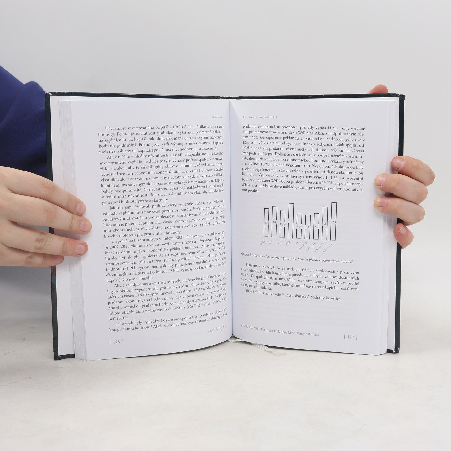 O tom, jak přemýšlíme, jak se na investice díváme. Je to něco, co sám Buffett nazval Money Mind. V knize Myslete jako miliardář: Tajemství money mind Warrena Buffetta autor bestsellerů Robert Hagstrom analyzuje Buffettovu zásadní moudrost, která je složitou spletí rozsáhlých myšlenek. Hagstrom, úspěšný investor a autor knih s pronikavými analýzami Buffettových investičních metod, kterých se prodalo přes 1 milion výtisků, se nyní zabývá mnohem zásadnější otázkou: Co tyto metody formovalo? Money Mind je na jedné úrovni to způsob uvažování o hlavních finančních otázkách, jako je alokace kapitálu. Na další úrovni shrnuje celkové myšlení pro úspěšné investování na dnešním akciovém trhu, myšlení, které závisí na odhodlání učit se, přizpůsobovat se a čelit nepodstatnému tržnímu šumu. Na ještě hlubší úrovni nám vypovídá mnohé o člověku, kterého nazýváme Money Mind, tedy o člověku, který bude s velkou pravděpodobností úspěšný v mnoha oblastech života – včetně investování. Toto není kniha o metodách. Je to kniha o myšlení. Kniha Myslete jako miliardář: Tajemství money mind Warrena Buffetta vysvětluje filozofii sebedůvěry, stoicismu, racionalismu a pragmatismu a jejich přínos pro inteligentní investiční rozhodování. Rovněž nastiňuje vývoj hodnotového investování, pojednává o tom, jak rozvíjet investiční myšlení založené na podnikání, a popisuje charakteristické rysy úspěšného aktivního řízení.