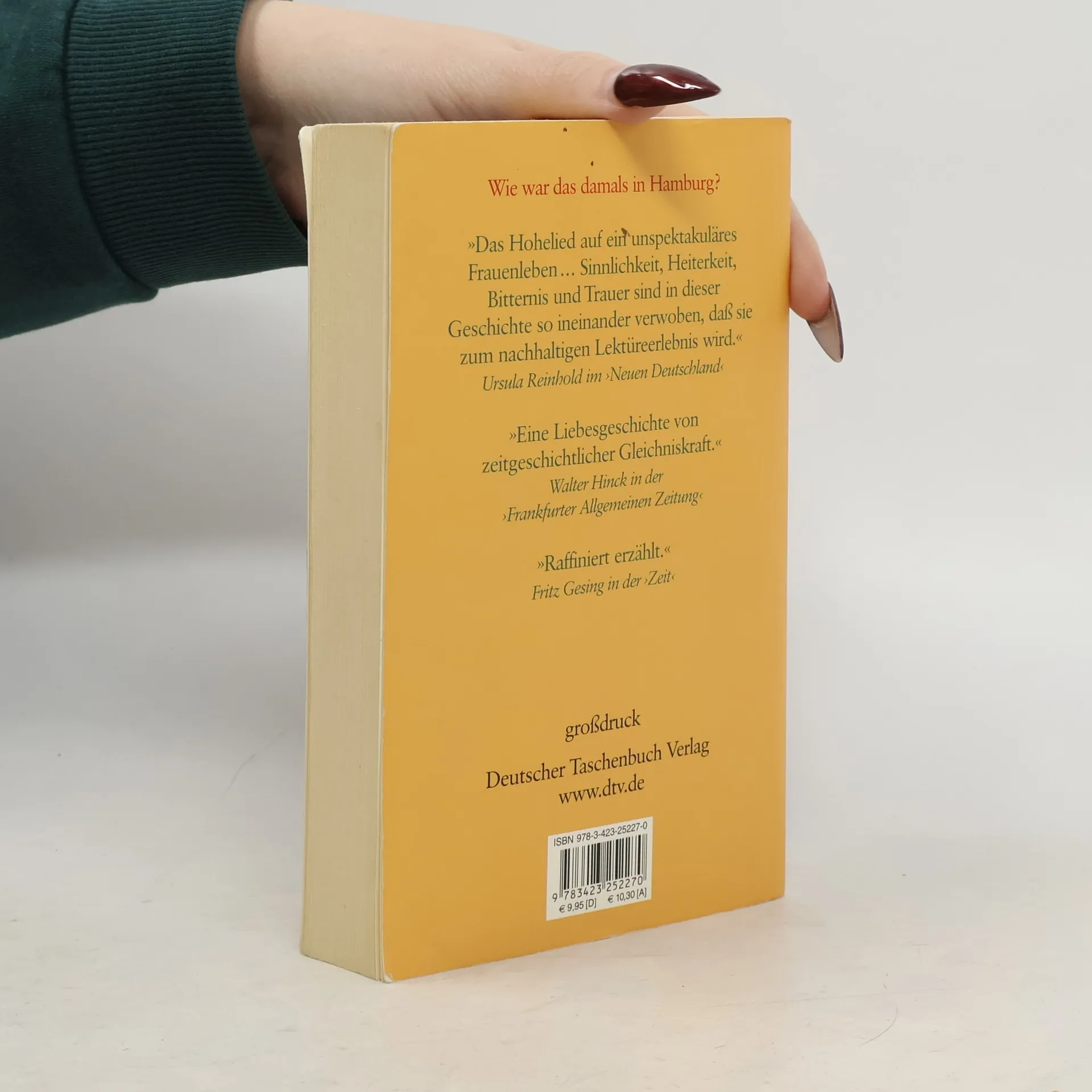 In Erinnerung an seine Kindheit macht sich der Erzähler auf die Suche nach der ehemaligen Besitzerin einer Imbissbude am Hamburger Großneumarkt. Er findet die hochbetagte Lena Brücker in einem Altersheim und erfährt die Geschichte ihrer »schönsten Jahre« und wie es zur Entdeckung der Currywurst kam. Der Bogen spannt sich weit zurück in die letzten Apriltage des Jahres 1945 ... »Uwe Timm gestaltet eine ebenso groteske wie rührende, phantastische wie im konkreten Alltag verwurzelte Liebesgeschichte ... Er schafft auf geradezu artistische Weise ein weitverzweigtes, raffiniert montiertes und außerordentlich vergnüglich zu lesendes literarisches Kunststück.« Detlef Grumbach in der ›Woche‹