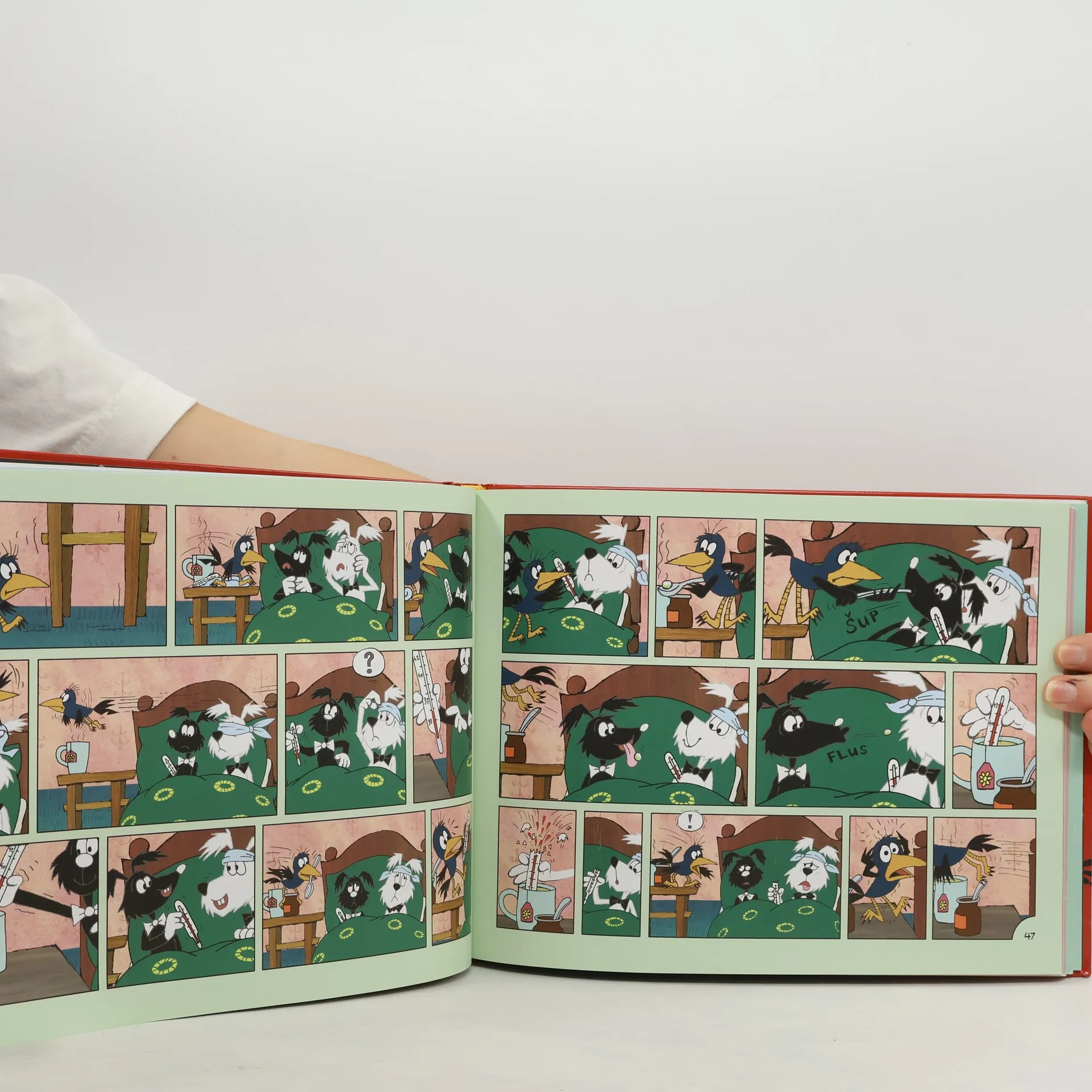 Podle večerníčku Martina Otevřela a Jiřího Munka, s obrázky Zdeňka Smetany za autorské spolupráce Marii Axamitové, nakreslil a napsal Martin Otevřel. Štaflík a Špagetka bydlí v chaloupce a je jim spolu dobře. Ráno se jim ale nikdy nechce vstávat. Jenže na střeše za komínem bydlí ještě poťouchlá vrána, známé ranní ptáče, takže je nikdy dlouho spát nenechá. Každý den vymýšlí, jakou lumpárnu by jim vyvedla. V sedmi obrázkových příbězích podle nového večerníčku navštíví Štaflík a Špagetka posilovnu, svedou námořní bitvu, zažijí dobrodružné Vánoce i veselé příhody. V knížce se také setkáte s hamižným křečkem, závodními chrty, krásnou pudlicí a dalšími zvířátky.