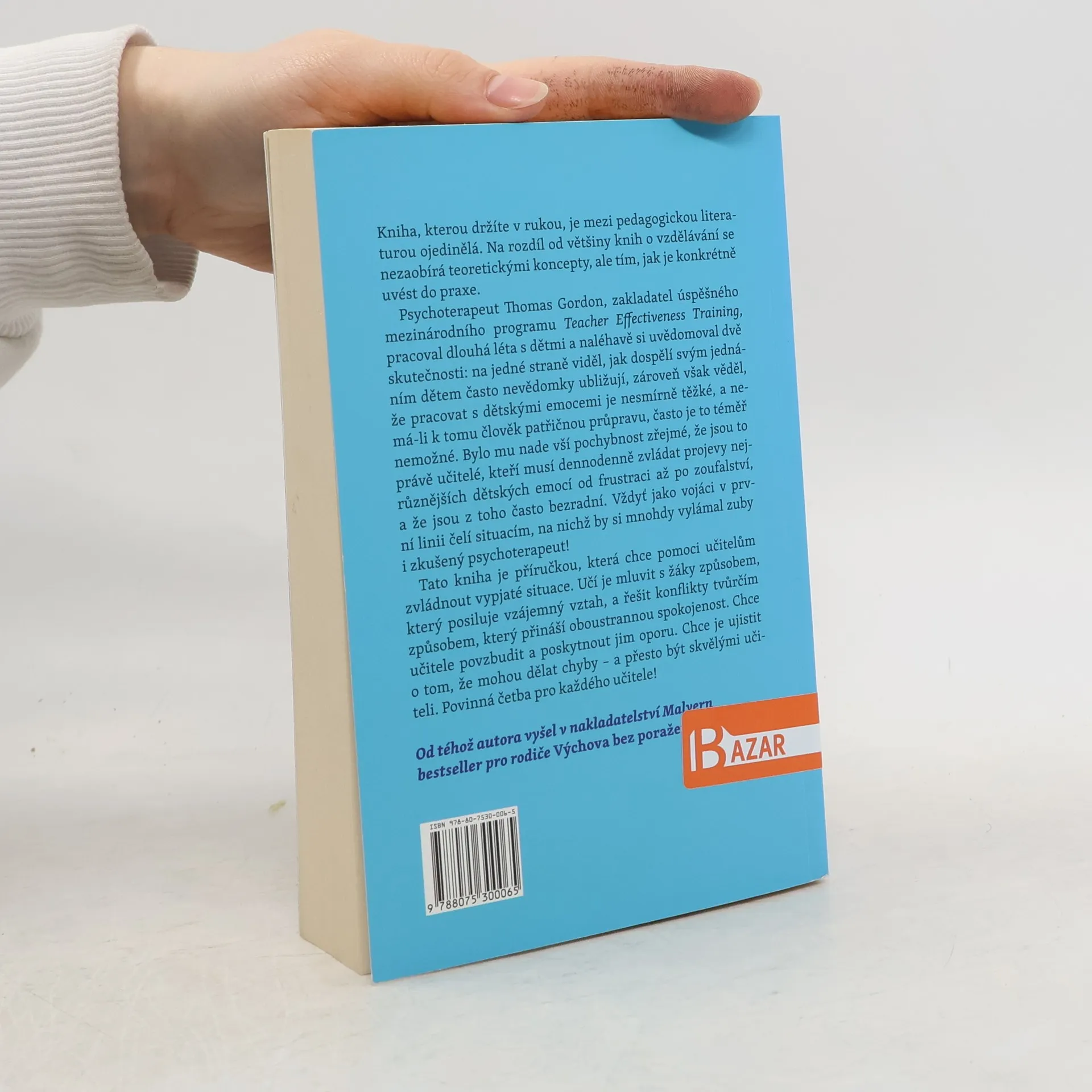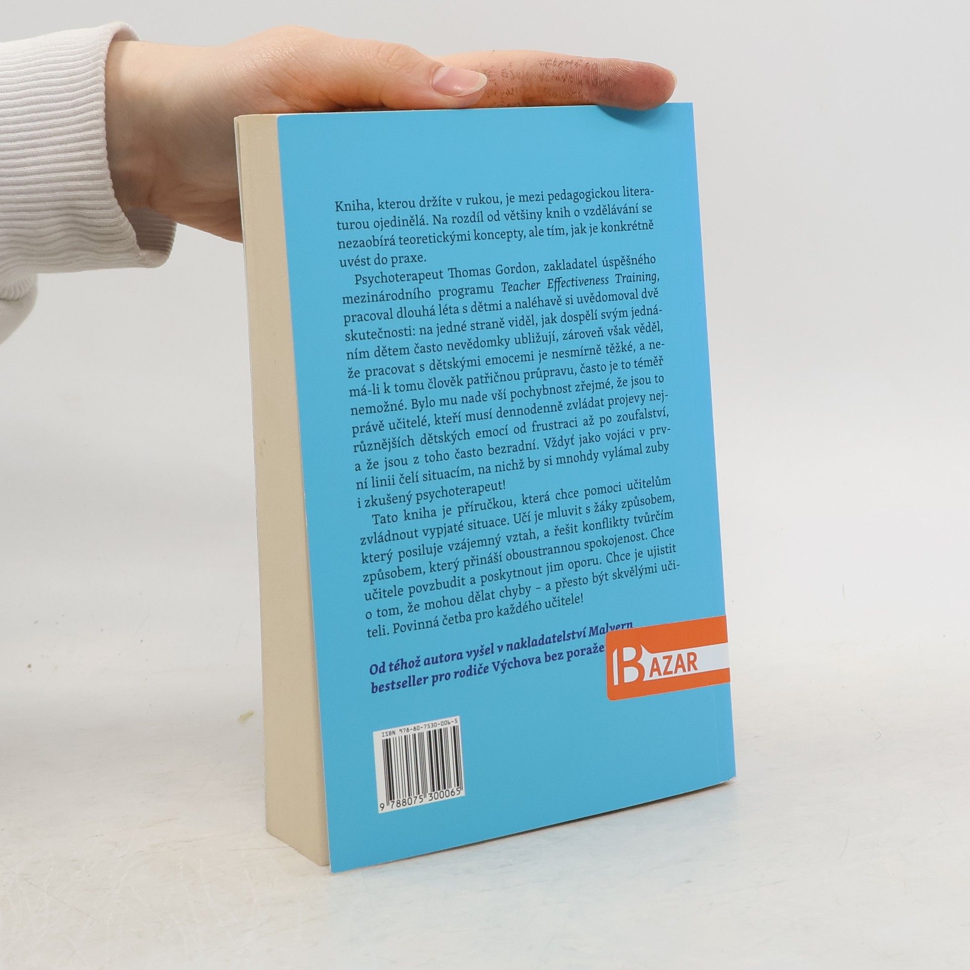 Kniha, kterou držíte v rukou, je mezi pedagogickou literaturou ojedinělá. Na rozdíl od většiny knih o vzdělávání se nezaobírá teoretickými koncepty, ale tím, jak je konkrétně uvést do praxe. Tato kniha je příručkou, která chce pomoci učitelům zvládnout vypjaté situace. Učí je mluvit s žáky způsobem, který posiluje vzájemný vztah, a řešit konflikty tvůrčím způsobem, který přináší oboustrannou spokojenost. Chce učitele povzbudit a poskytnout jim oporu. Chce je ujistit o tom, že mohou dělat chyby – a přesto být skvělými učiteli. Povinná četba pro každého učitele! Psychoterapeut Thomas Gordon, zakladatel úspěšného mezinárodního programu Teacher Effectiveness Training, pracoval dlouhá léta s dětmi a naléhavě si uvědomoval dvě skutečnosti: Na jedné straně viděl, jak dospělí svým jednáním dětem často nevědomky ubližují. Zároveň však věděl, že pracovat s dětskými emocemi je nesmírně těžké, a nemá-li k tomu člověk patřičnou průpravu, často je to téměř nemožné. Bylo mu nade vší pochybnost zřejmé, že jsou to právě učitelé, kteří musí denodenně zvládat projevy nejrůznějších dětských emocí od frustraci až po zoufalství, a že jsou z toho často bezradní. Vždyť jako vojáci v první linii čelí situacím, na nichž by si mnohdy vylámal zuby i zkušený psychoterapeut!