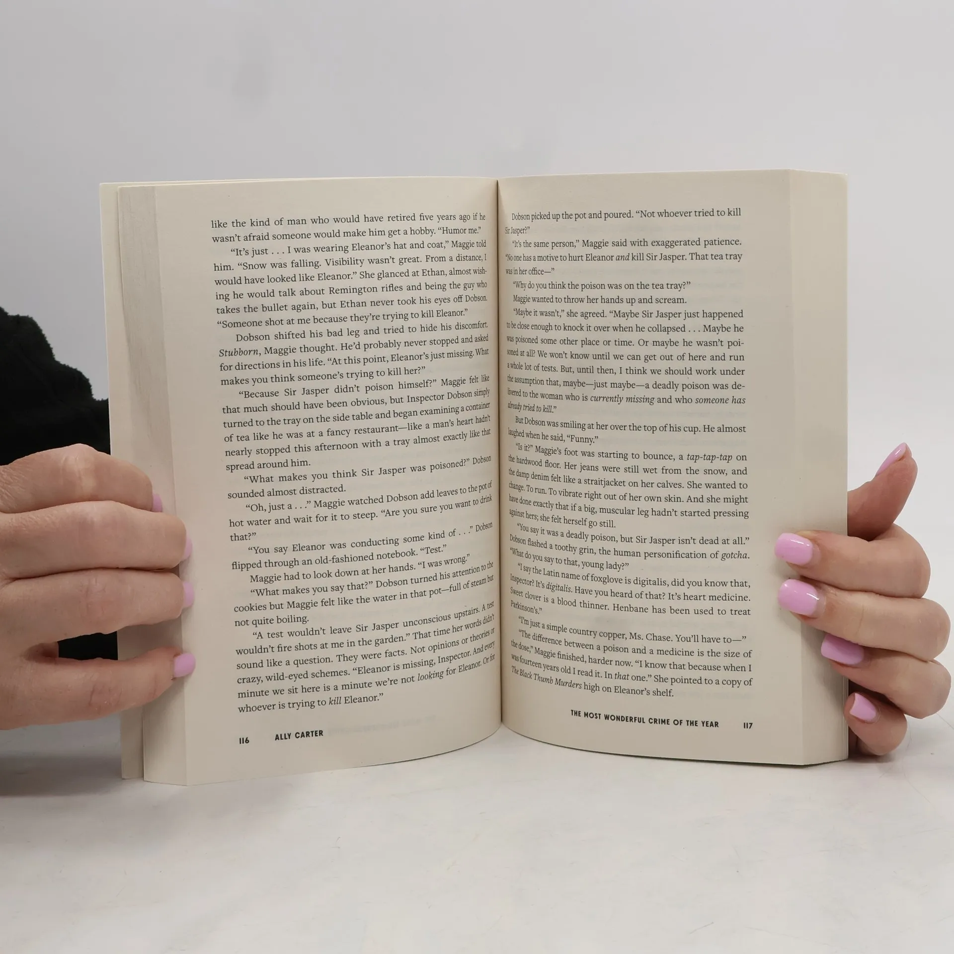 Knives Out gets a rom-com twist in this rivals-to-lovers Christmas romance-mystery from New York Times bestselling author Ally CarterThe bridge is out. The phones are down. And the most famous mystery writer in the world just disappeared out of a locked room three days before Christmas.Meet Maggie Chase and Ethan Wyatt:She’s the new Queen of the Cozy Mystery.He’s Mr. Big-Time Thriller Guy.She hates his guts.He thinks her name is Marcie (no matter how many times she’s told him otherwise.)But when they both accept a cryptic invitation to attend a Christmas house party at the English estate of a reclusive fan, neither is expecting their host to be the most powerful author in the world: Eleanor Ashley, the Duchess of Death herself.That night, the weather turns, and the next morning Eleanor is gone.She vanished from a locked room, and Maggie has to wonder: Is Eleanor in danger? Or is it all some kind of test? Is Ethan the competition? Or is he the only person in that snowbound mansion she can trust?As the snow gets deeper and the stakes get higher, every clue will bring Maggie and Ethan closer to the truth—and each other. Because, this Christmas, these two rivals are going to have to become allies (and maybe more) if they have any hope of saving Eleanor.Assuming they don’t kill each other first.