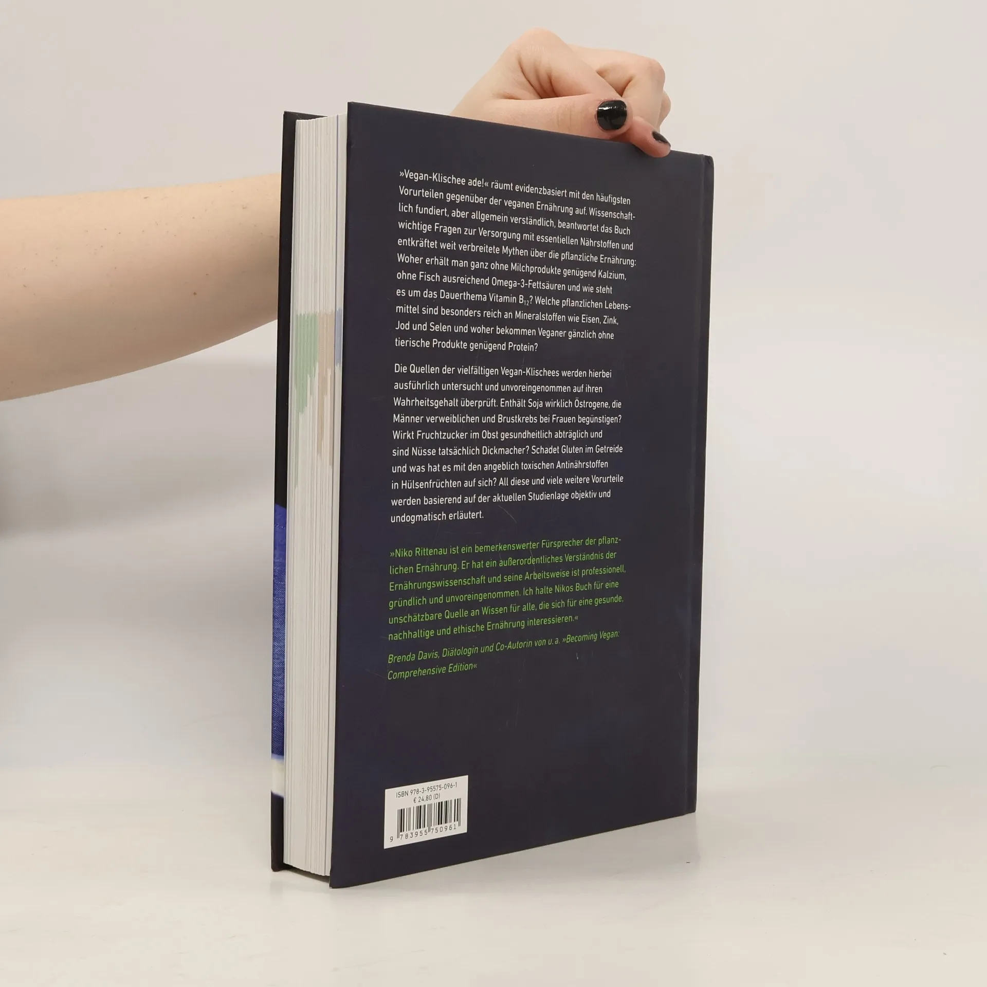 „Vegan-Klischee ade!“ räumt mit gängigen Vorurteilen zur veganen Ernährung auf. Wissenschaftlich fundiert und allgemein verständlich, beantwortet das Buch zentrale Fragen zur Versorgung mit essentiellen Nährstoffen wie Protein, Eisen, Calcium, B12 und Omega 3. Bei richtiger Auswahl und Zubereitung kann eine vegane Ernährung gesundheitsfördernd sein und zur Prävention chronisch-degenerativer Erkrankungen beitragen. Es wird erläutert, warum einige Ernährungsgesellschaften eine vegane Ernährung für alle Altersgruppen empfehlen, während andere davon abraten. Das Buch bietet praxisnahe Tipps, wie man sich mit einer Vielzahl pflanzlicher Lebensmittel bedarfsdeckend vegan ernährt. Klischees werden objektiv auf ihren Wahrheitsgehalt überprüft und widerlegt. Enthält Soja wirklich Östrogene, die Männer verweiblichen und Brustkrebs bei Frauen begünstigen? Ist zu viel Fruchtzucker aus Obst schädlich und machen kalorienreiche Nüsse dick? Schadet Gluten im Getreide und was ist mit den angeblich toxischen Antinährstoffen in Hülsenfrüchten? Diese und viele weitere Mythen werden basierend auf der aktuellen Studienlage objektiv und undogmatisch erläutert. Das Buch klärt ernährungswissenschaftlich Interessierte über viele Mythen zur veganen Ernährung auf und bietet auch vegan lebenden Menschen neue Erkenntnisse.
