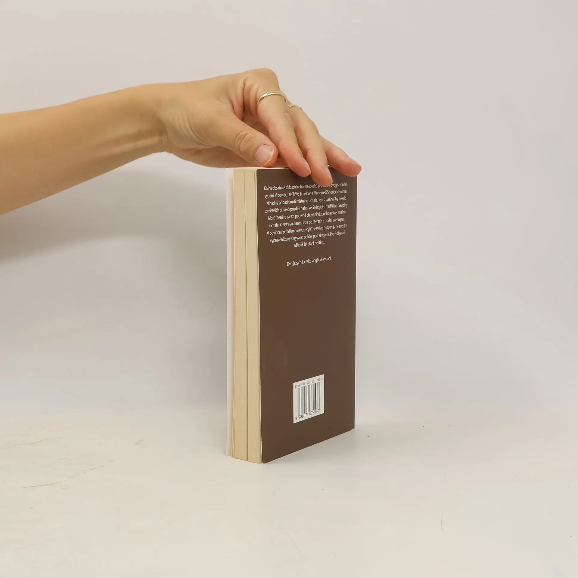 Brilantní vydání tří povídek Arthura Conana Doyla s Sherlockem Holmesem v "hlavní roli" - Šplhající muž, Lví hříva a Podnájemnice v závoji. Na levé stránce text v originálu - na stránce pravé český překlad. Opatřeno komentářem.