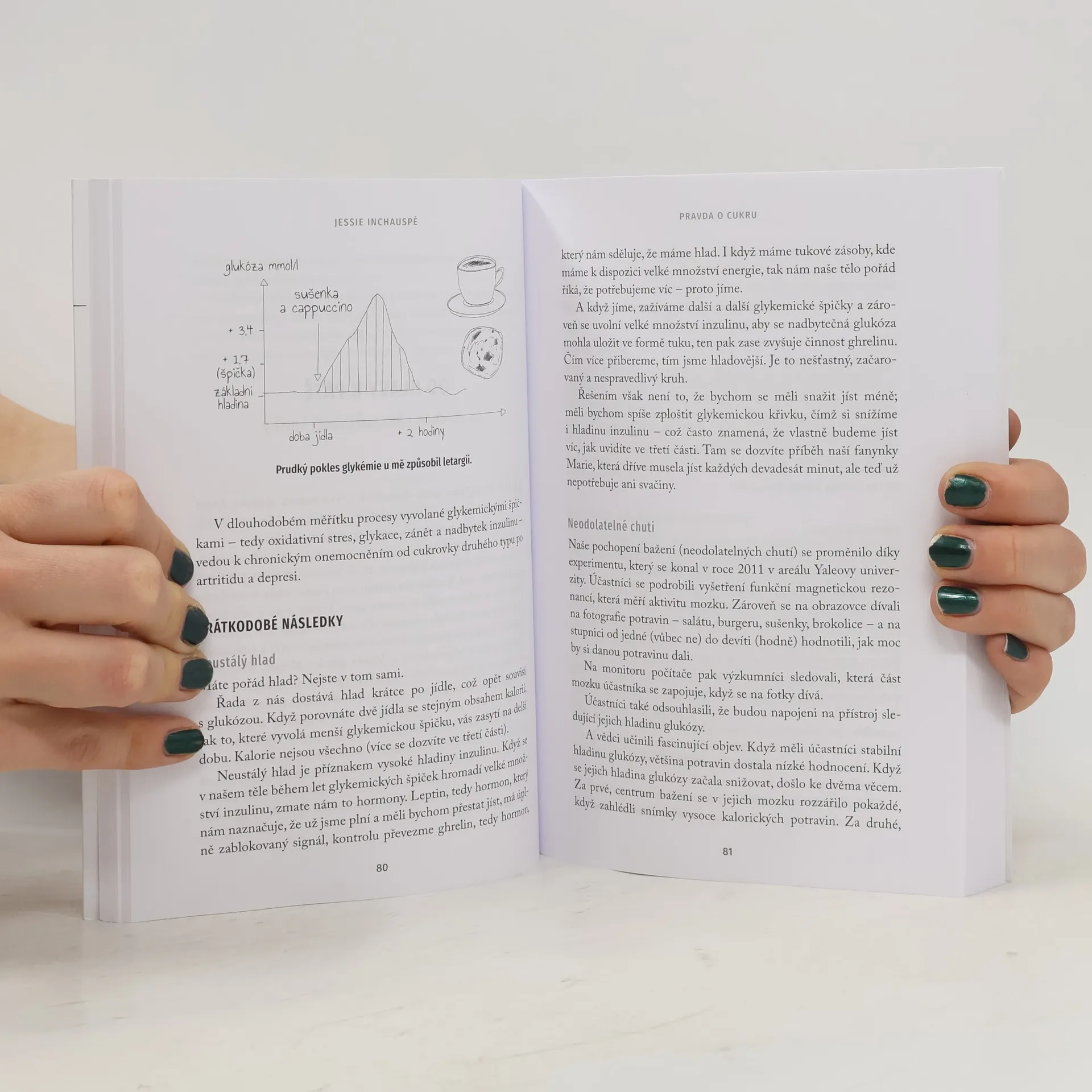 Deset triků, které vám pomohou vyrovnat hladinu glukózy v krvi bez nutnosti diety a umožní vám pokračovat v konzumaci oblíbených jídel. Chcete zlepšit své zdraví, spánek, náladu a energii, a také snížit chuť na sladké a hmotnost? To vše je možné díky jednoduchým metodám, které představuje biochemička Jessie Inchauspé, známá jako Glucose Goddess. Tyto techniky zpomalují stárnutí organismu, aniž byste se museli vzdát potravin, které máte rádi. Jessie čerpá z ověřených vědeckých poznatků a vlastního výzkumu, což vám umožní lépe kontrolovat hladinu krevního cukru, což má zásadní vliv na vaše zdraví a náladu. Glukóza, malá molekula v těle, má velký vliv na naše zdraví. Příliš vysoká hladina glukózy, které trpí devadesát procent populace, se projevuje chutí na sladké, únavou, hormonálními problémy a dalšími obtížemi. Dlouhodobě může vést k vážnějším zdravotním problémům, jako je cukrovka druhého typu nebo kardiovaskulární onemocnění. Jessie nabízí deset srozumitelných triků, které vám pomohou vyrovnat hladinu glukózy a zbavit se nepříjemných projevů, aniž byste museli držet dietu.