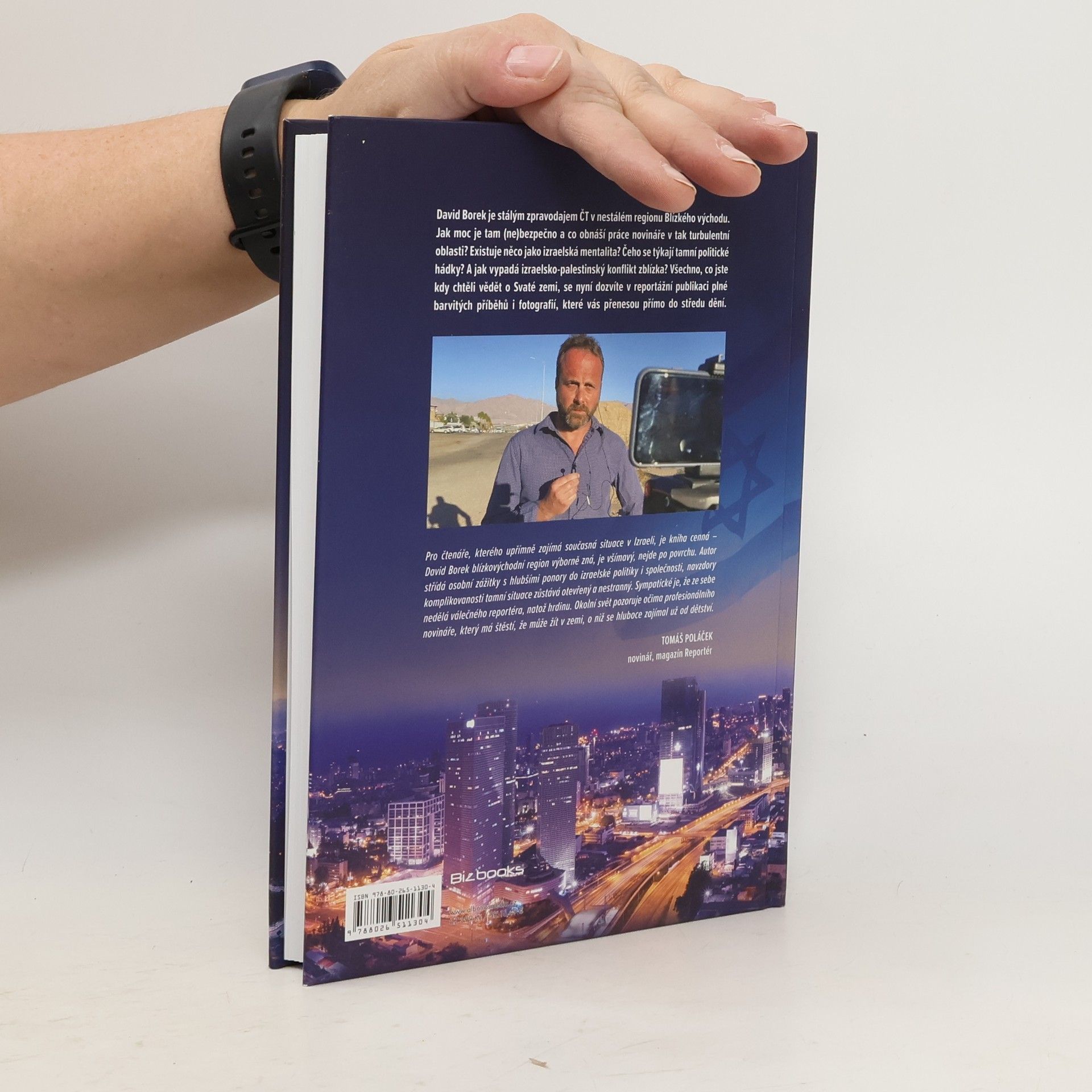 Jarmulky, surfaři a rakety.Izrael a neklidná oblast Blízkého východu očima reportéra ČT. David Borek je stálým zpravodajem ČT v nestálém regionu Blízkého východu. Jak moc je tam (ne)bezpečno a co obnáší práce novináře v tak turbulentní oblasti? Existuje něco jako izraelská mentalita? Čeho se týkají tamní politické hádky? A jak vypadá izraelsko-palestinský konflikt zblízka? Všechno, co jste kdy chtěli vědět o Svaté zemi, se nyní dozvíte v reportážní publikaci plné barvitých příběhů i fotografií, které vás přenesou přímo do středu dění.
