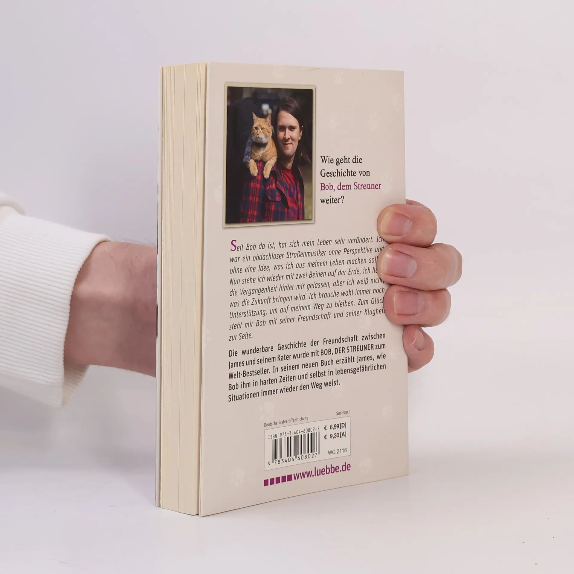 Wie geht die Geschichte von Bob, dem Streuner weiter? Seit Bob da ist, hat sich mein Leben sehr verändert. Ich war ein obdachloser Straßenmusiker ohne Perspektive und ohne eine Idee, was ich aus meinem Leben machen sollte. Nun stehe ich wieder mit zwei Beinen auf der Erde, ich habe die Vergangenheit hinter mir gelassen, aber ich weiß nicht, was die Zukunft bringen wird. Ich brauche wohl immer noch Unterstützung, um auf meinem Weg zu bleiben. Zum Glück steht mir Bob mit seiner Freundschaft und seiner Klugheit zur Seite. Die wunderbare Geschichte der Freundschaft zwischen James und seinem Kater wurde mit „Bob, der Streuner“ zum Welt-Bestseller. In seinem neuen Buch erzählt James, wie Bob ihm in harten Zeiten und selbst in lebensgefährlichen Situationen immer wieder den Weg weist. Mit Fotos von James und Bob