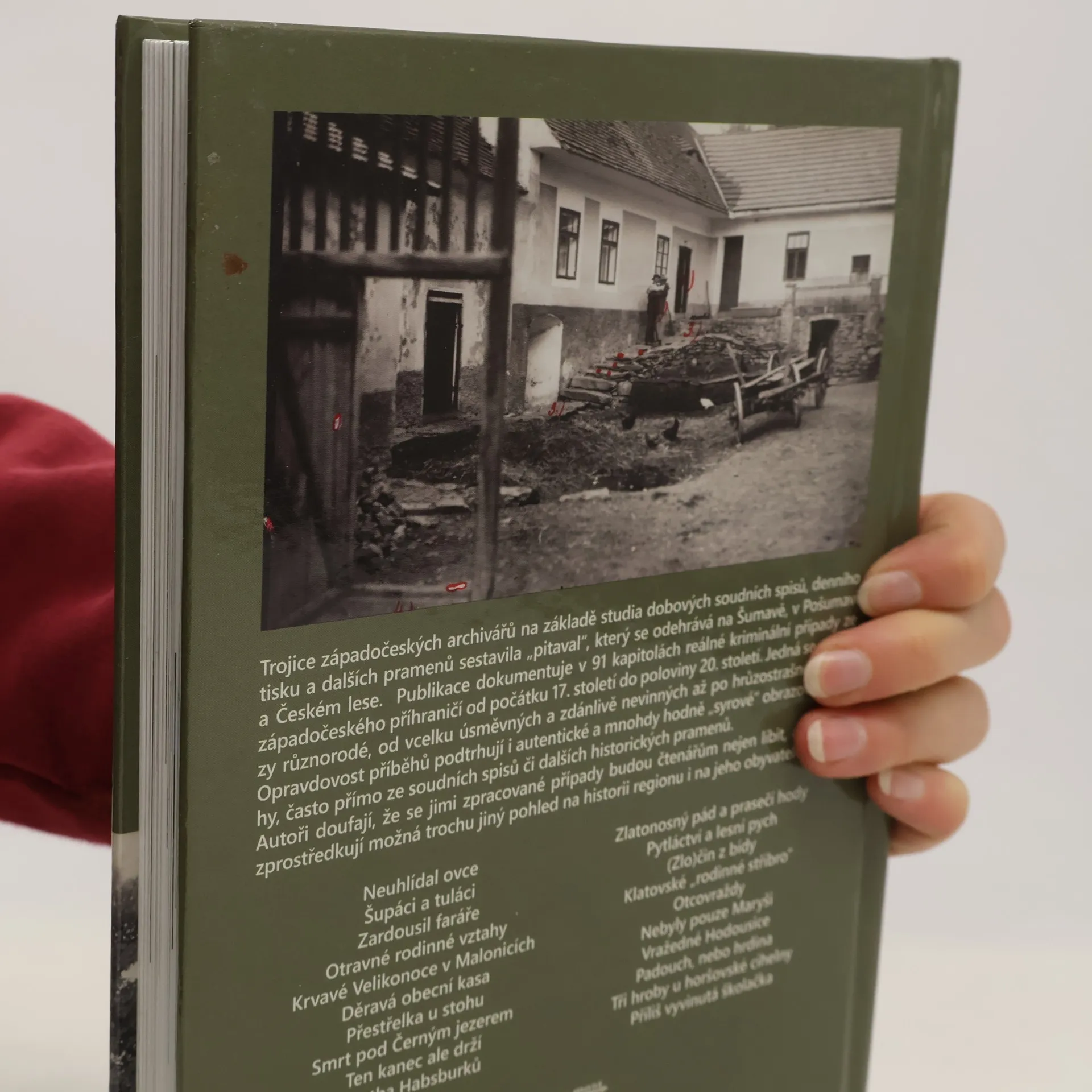 Kniha Kriminální případy a aféry ze Šumavy, Pošumaví a Českého lesa zachycuje téměř stovku příběhů ze západočeského pohraničí. Nejstarší se stal v roce 1606, ale drtivá většina se odehrála v dobách Rakouska-Uherska a první republiky.Mimořádným případem byla například nešťastná srážka drezíny s vlakem u Švihova, při které zahynuli tři lidé. Mezi nimi rada státních drah Singer, který na drezíně rozvážel výplaty železničářům. Tisíce korun se po nehodě nikdy nenašly. Zajímavým případem byla i série tragických výbuchů dynamitových náloží při budování výkopu ze šumavského Černého jezera do nádrže přečerpávací elektrárny. Soudní spisy také obsahují mnohá svědectví o pádech lidí do nezajištěných štol u Kašperských Hor.Knihu napsala trojice západočeských archivářů.