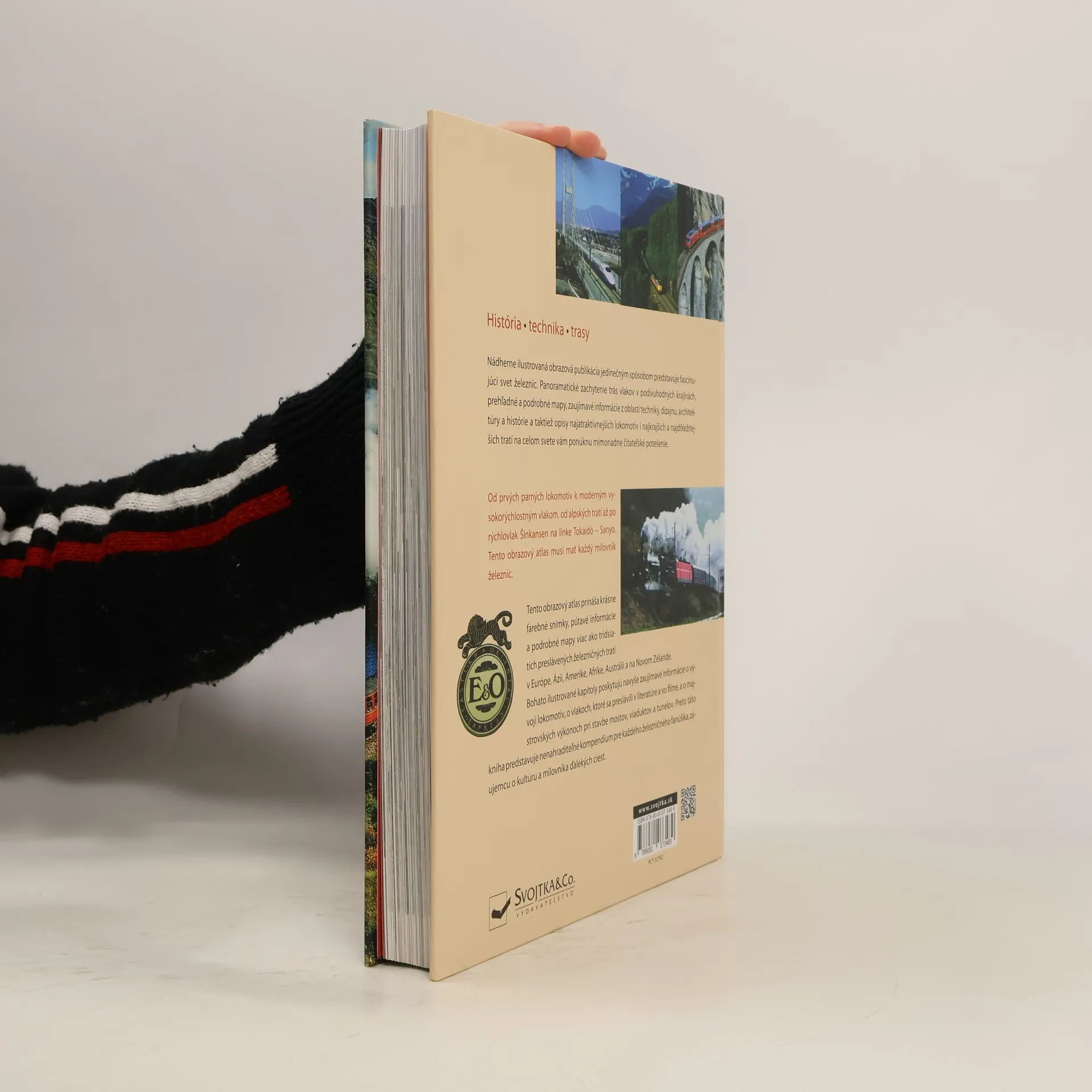 Tento obrazový atlas prináša krásne farebné snímky, pútavé informácie a podrobné mapy viac ako tridsiatich železničných tratí v Európe, Ázii, Amerike, Afrike, Austrálii a na Novom Zélande. Bohato ilustrované kapitoly poskytujú navyše zaujímavé informácie o vývoji lokomotív, o vlakoch, ktoré sa preslávili v literatúre a vo filme, a o majstrovských výkonoch pri stavbe mostov, viaduktov a tunelov. Preto táto kniha predstavuje nenahraditeľné kompendium pre každého železničného fanúšika, záujemcu o kultúru a milovníka ďalekých ciest.