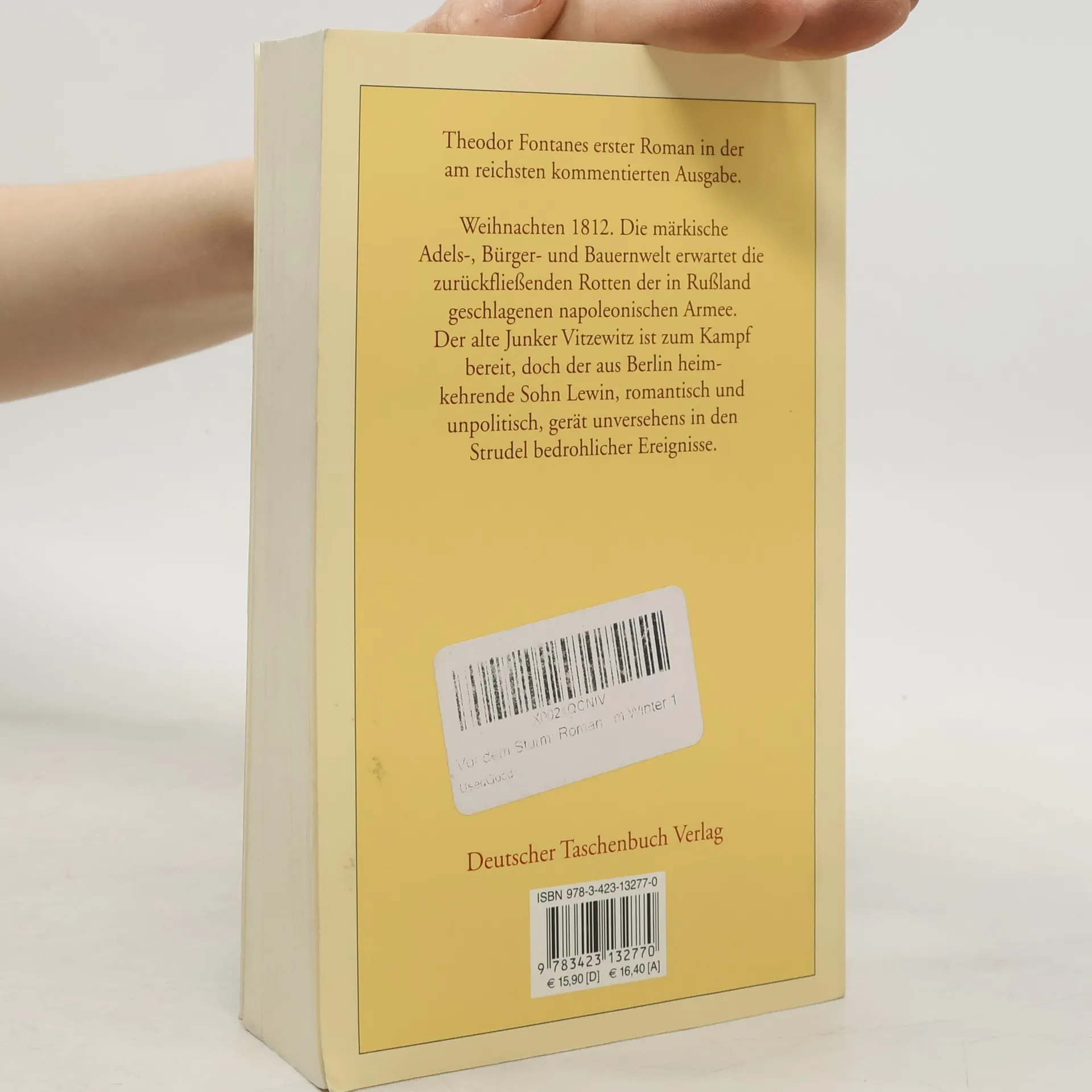 Der großartige Auftakt von Fontanes epischem Lebenswerk, der mit der Frage nach der historischen und sozialen Rolle des preußischen Adels ein Thema aufgreift, das ihn bis zu seinem letzten Roman, dem zwei Jahrzehnte später erschienenen ›Stechlin‹ beschäftigte. Fontanes ›Vor dem Sturm‹ entfaltet ein Panorama der märkischen Adels-, Bürger- und Bauernwelt, rückblickend in die Geschichte und vorausschauend auf die Befreiungskriege gegen Napoleon. Im Mittelpunkt steht der junge Lewin Vitzewitz, der sich in romantischen Literaturzirkeln im fernen Berlin durchaus wohl fühlt, aber von seinem draufgängerischen Vater zu den Waffen gerufen wird – gegen die rückkehrenden Franzosenheere. Es bahnt sich ein Geschehen an, das Lewin beinahe mit dem Tod bezahlen muss.