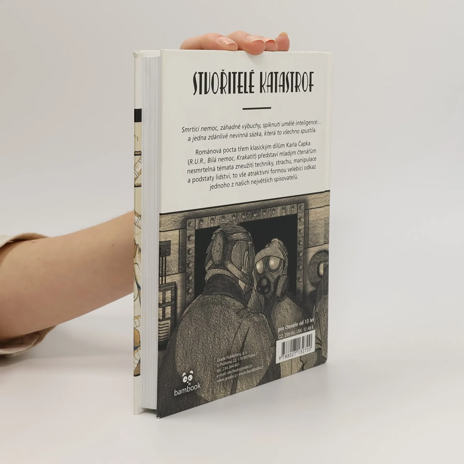 Smrtící nemoc, záhadné výbuchy, spiknutí umělé inteligence… a jedna zdánlivě nevinná sázka, která to všechno spustila. Lidstvo kráčí bezohlednou cestou pokroku. Na pomoc si zve roboty, kteří mohou pracovní činnosti ulehčit. Stroje jsou však pro dobro společnosti schopny udělat víc, než po nich kdokoli požadoval. Ponořte se do strhujícího příběhu o třech přátelích, jejichž cesty se po vysoké škole rozešly, aby se za děsivých okolností opět provázaly. Helena Gloryová, konstruktérka robotů, Marek Prokop, expert na vývoj výbušnin, a Filip Galén, toužící po vývoji geniálního léku, spojí své síly k zdánlivě nevinnému experimentu. K pokusu, který má ochránit lidstvo, ale místo toho je uvede na pokraj chaosu. Románová pocta třem klasickým dílům Karla Čapka (R.U.R., Bílá nemoc, Krakatit) představí mladým čtenářům nesmrtelná témata zneužití techniky, strachu, manipulace a podstaty lidství, to vše atraktivní formou velebící odkaz jednoho z našich největších spisovatelů.