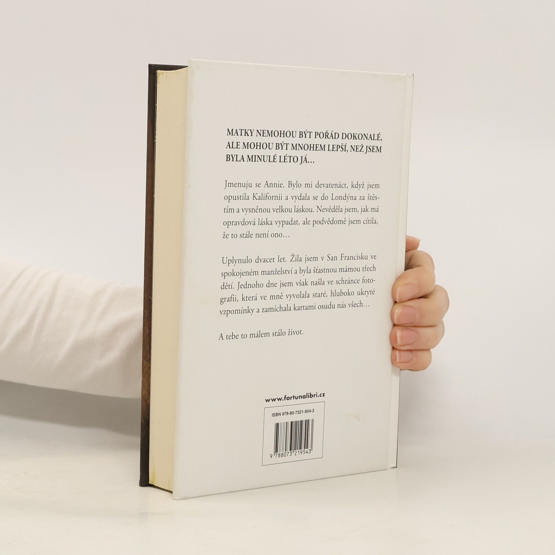 MATKY NEMOHOU BÝT POŘÁD DOKONALÉ, ALE MOHOU BÝT MNOHEM LEPŠÍ, NEŽ JSEM BYLA MINULÉ LÉTO JÁ… Jmenuju se Annie. Bylo mi devatenáct, když jsem opustila Kalifornii a vydala se do Londýna za štěstím a vysněnou velkou láskou. Nevěděla jsem, jak má opravdová láska vypadat, ale podvědomě jsem cítila, že to stále není ono… Uplynulo dvacet let. Žila jsem v San Francisku ve spokojeném manželství a byla šťastnou mámou třech dětí. Jednoho dne jsem však našla ve schránce fotografii, která ve mně vyvolala staré, hluboko ukryté vzpomínky a zamíchala kartami osudu nás všech… A tebe to málem stálo život.