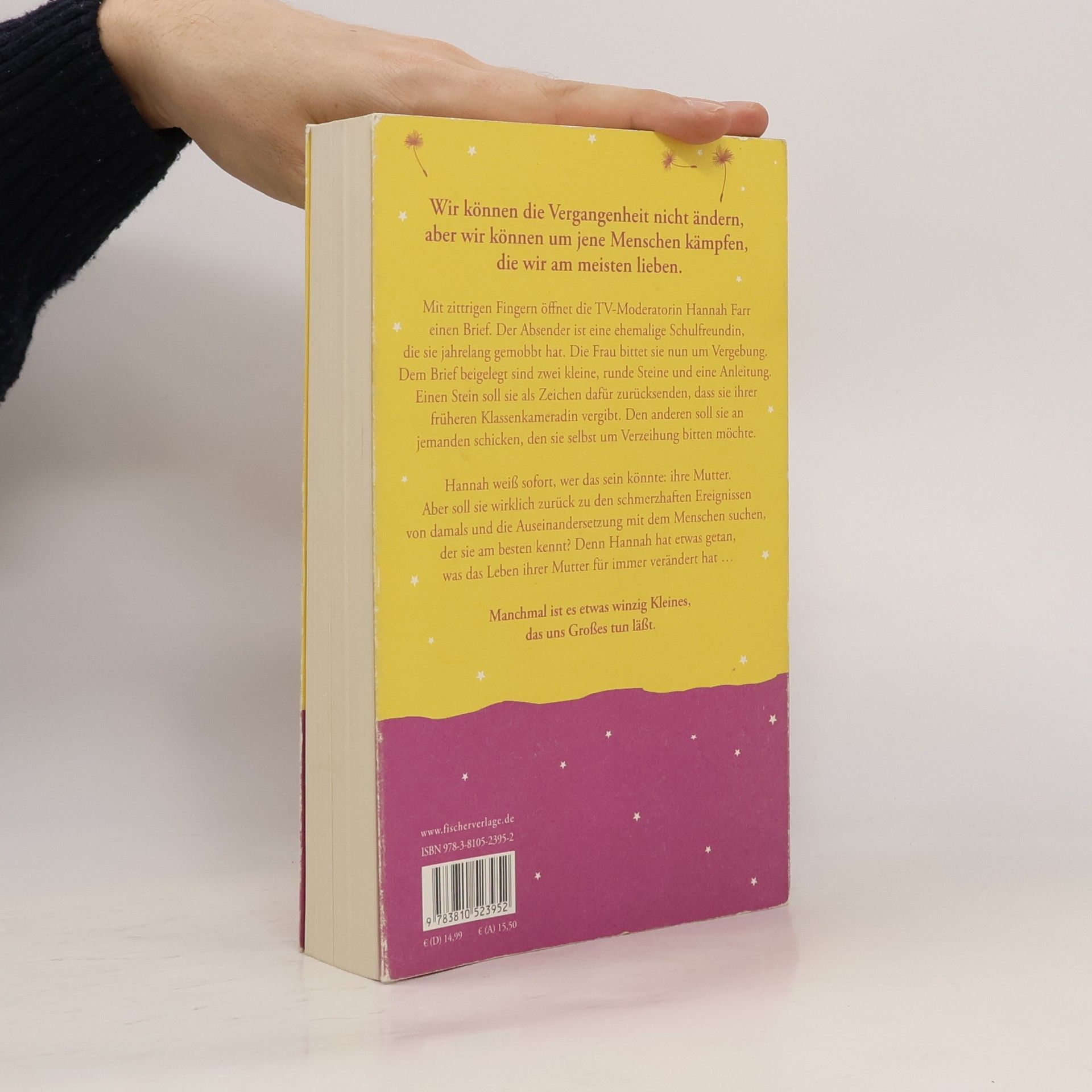 ***Von der Autorin der berührendsten Geschichte des Jahres 2014 kommt nun ein Roman über das Verzeihen, der Hoffnung macht.*** Mit zittrigen Fingern öffnet die TV-Moderatorin Hannah Farr einen Brief. Der Absender ist eine ehemalige Schulfreundin, die sie jahrelang gemobbt hat. Die Frau bittet sie nun um Vergebung. Dem Brief beigelegt sind zwei kleine runde Steine und eine Anleitung. Einen Stein soll sie als Zeichen dafür zurücksenden, dass sie ihrer früheren Klassenkameradin vergibt. Den anderen soll sie an jemanden schicken, den sie selbst um Verzeihung bitten möchte. Hannah weiß sofort, wer das sein könnte: ihre Mutter. Aber soll sie wirklich zurück zu den schmerzhaften Ereignissen von damals und die Auseinandersetzung mit dem Menschen suchen, der sie am besten kennt? Denn Hannah hat etwas getan, das das Leben ihrer Mutter für immer verändert hat … Manchmal ist es etwas winzig Kleines, das uns Großes tun lässt.