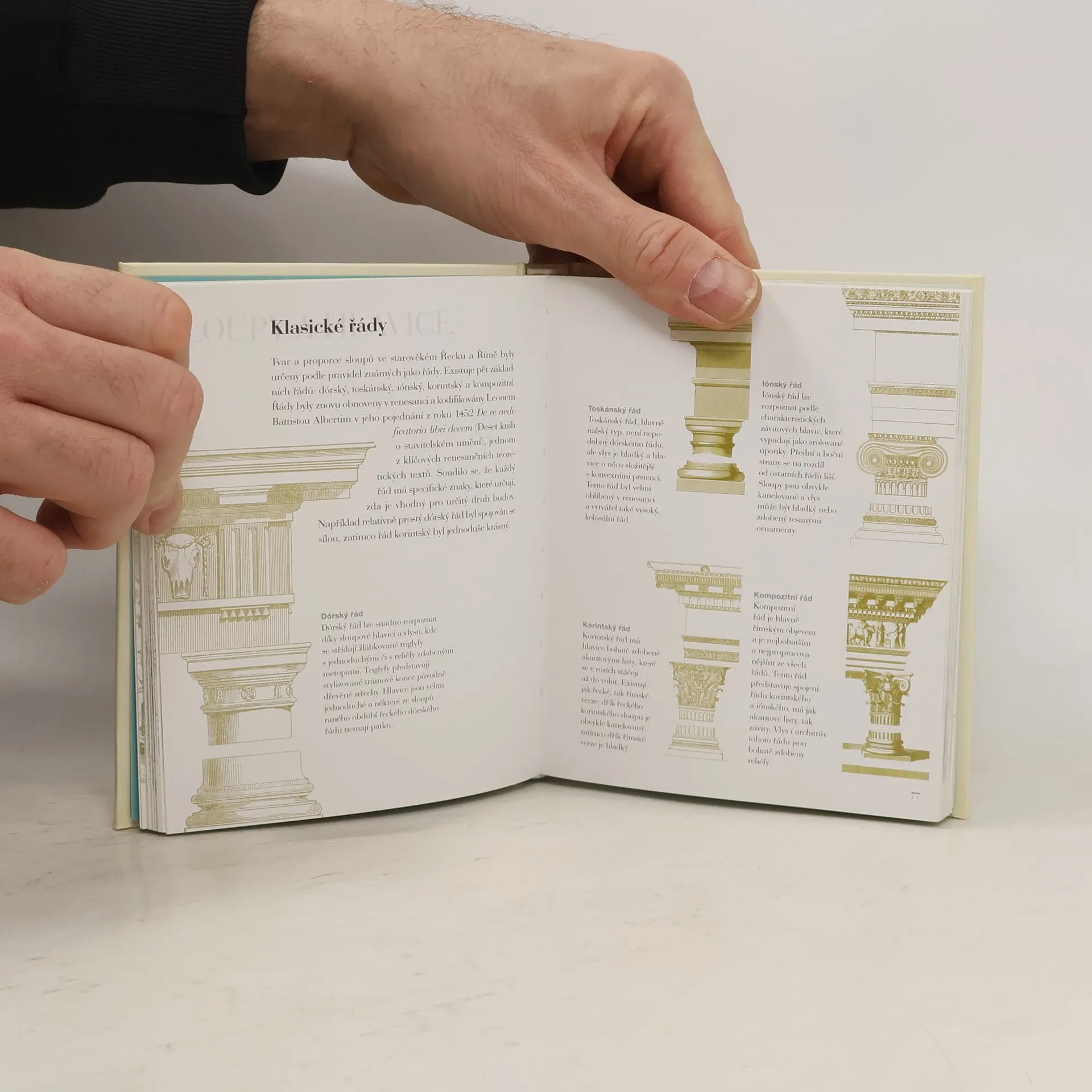 Příručka o slohu, historii a vývoji staveb. Součástí každé budovy jsou typické prvky, pevně ukotvené v jejím vzezření, které vypovídají nejen o architektonickém slohu, ale vyprávějí příběh o tom, kdo ji postavil, pro koho a proč. Tato jedinečná kniha, dost malá na to, aby se vešla do kapsy, ale dost obsáhlá na to, aby poskytovala odpovědi na skutečné otázky, je nutnou výbavou každého milovníka architektury. Na počátku je přehledný souhrn typů budov, architektonických slohů a stavebních materiálů, každá z následujících kapitol se pak podrobně věnuje některému z architektonických prvků a sleduje jeho proměny napříč dějinami a zeměpisnými souřadnicemi jeho výskytu. Dokumentovány jsou tyto prvky na desítkách ilustrací doplněných obsáhlými popisky, s nimiž tvoří přehledný a snadno vnímatelný celek. Poslední část se zaobírá významem zdobného ornamentu.
