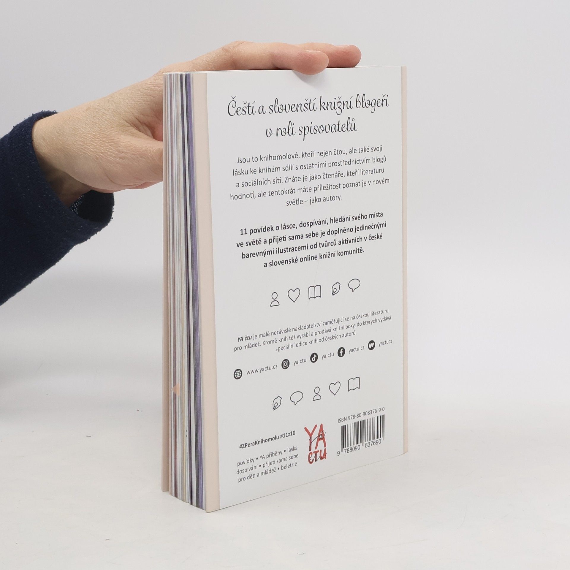 Čeští a slovenští knižní blogeři v roli spisovatelůJsou to knihomolové, kteří nejen čtou, ale také svoji lásku ke knihám sdílí s ostatními prostřednictvím blogů a sociálních sítí. Znáte je jako čtenáře, kteří literaturu hodnotí, ale tentokrát máte příležitost poznat je v novém světle – jako autory.11 povídek o lásce, dospívání, hledání svého místa ve světě a přijetí sama sebe je doplněno jedinečnými barevnými ilustracemi od tvůrců aktivních v české a slovenské online knižní komunitě.