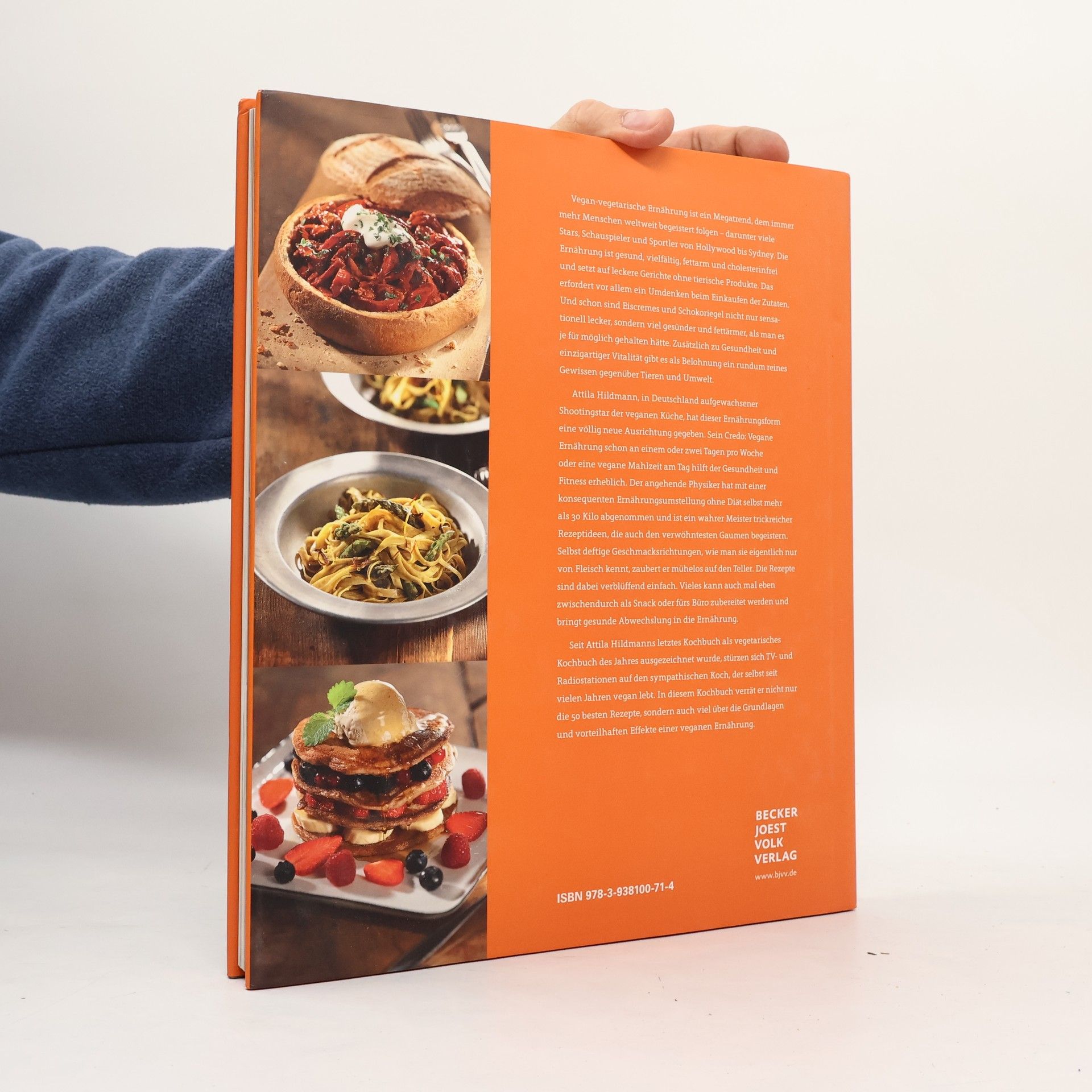 Attila Hildmann hat der veganen Küche eine völlig neue Ausrichtung gegeben und sie mit seinen Rezepten revolutioniert. Sein Credo lautet: schon 1 oder 2 Tage pro Woche oder eine vegane Mahlzeit am Tag führt zu erheblichen Vorteilen für jeden. Während Fleischesser durch tierische Fette – und auch Vegetarier durch Käse – meist dauerhaft zu viel Cholesterin zuführen, ist die vegane Ernährung praktisch cholesterinfrei. Attila Hildmann, angehender Physiker und deutschlands Vegan-Koch Nr. 1, ist ein wahrer Meister trickreicher Rezeptideen, die auch den verwöhntesten Gaumen begeistern. Selbst deftige Geschmacksrichtungen, wie man sie eigentlich nur von Fleisch kennt, zaubert er mühelos auf den Teller. Die Rezepte sind dabei verblüffend einfach und er fordern nur ein Umdenken beim Einkauf der Zutaten. Vieles kann auch mal eben zwischendurch als Snack oder fürs Büro zubereitet werden. Attila Hildmann selbst lebt seit vielen Jahren vegan und hat seitdem ohne Entbehrungen über 25 Kilo abgenommen. In diesem Kochbuch verrät er nicht nur die 50 besten Rezepte sondern auch viel über die Grundlagen und vorteilhaften Effekte einer veganen Ernährung.
