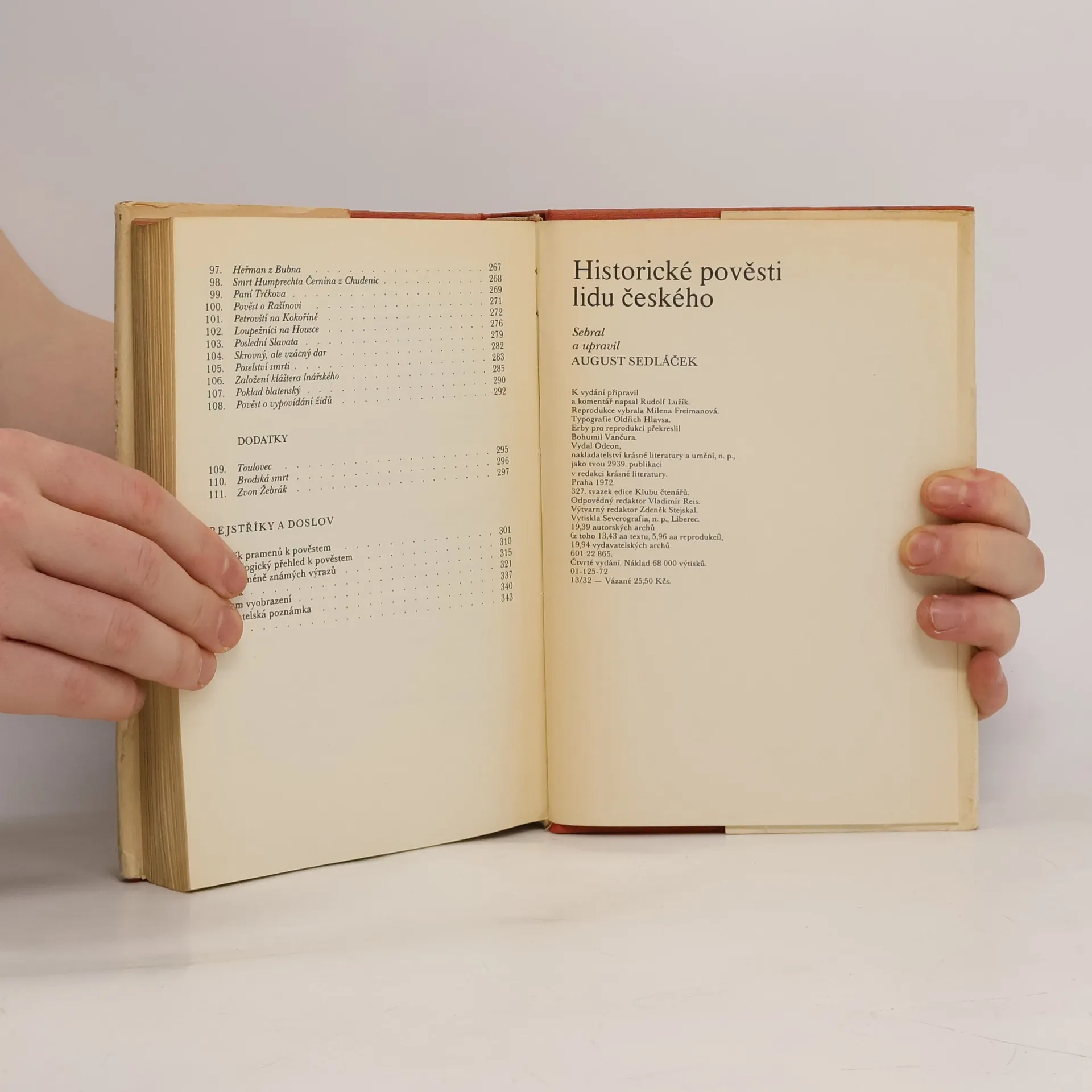 Výběr českých pověstí od Xi století až po XVI století a ještě něco navíc. Reprodukce vybrala Milena Freimanová, překresli Bohumil Vančura pro Klub čtenářů svazek 327