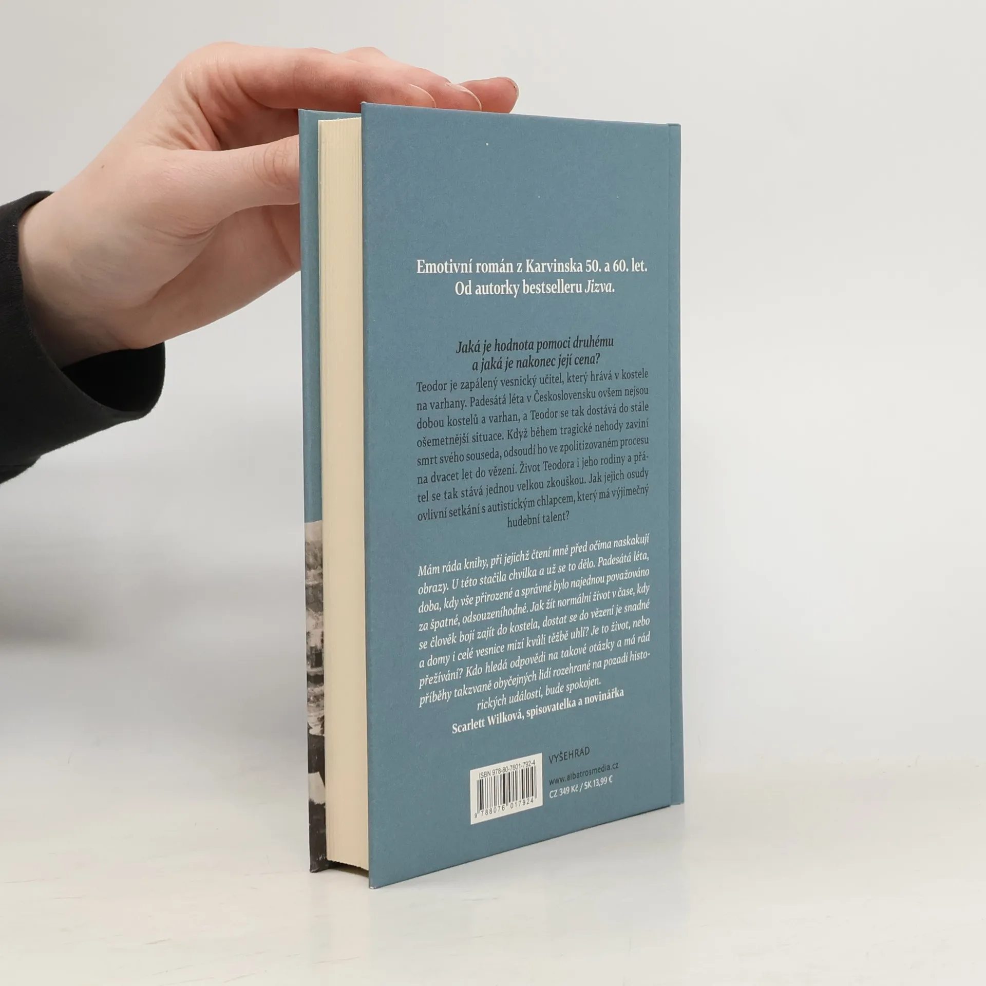 Emotivní román z Karvinska 50. a 60. let. Od autorky bestselleru Jizva. Teodor je zapálený vesnický učitel, který hrává v kostele na varhany. Padesátá léta v Československu ovšem nejsou dobou varhan a kostelů, a Teodor se tak dostává do stále ošemetnější situace. Když během tragické nehody zaviní smrt svého souseda, odsoudí ho ve zpolitizovaném procesu na dvacet let do vězení. Život Teodora i jeho rodiny a přátel se tak stává jednou velkou zkouškou. Jak jejich osudy ovlivní setkání s autistickým chlapcem, který má výjimečný hudební talent?