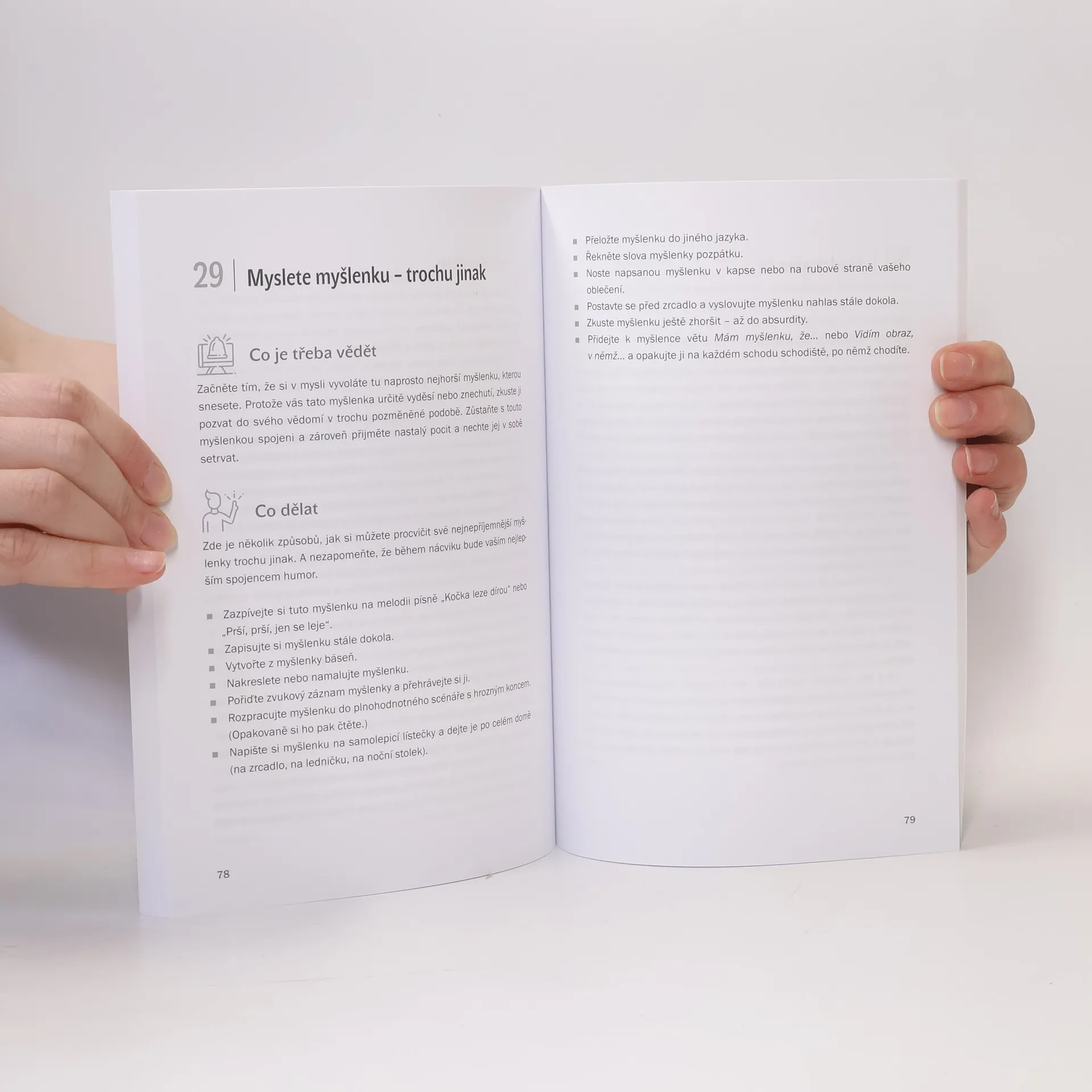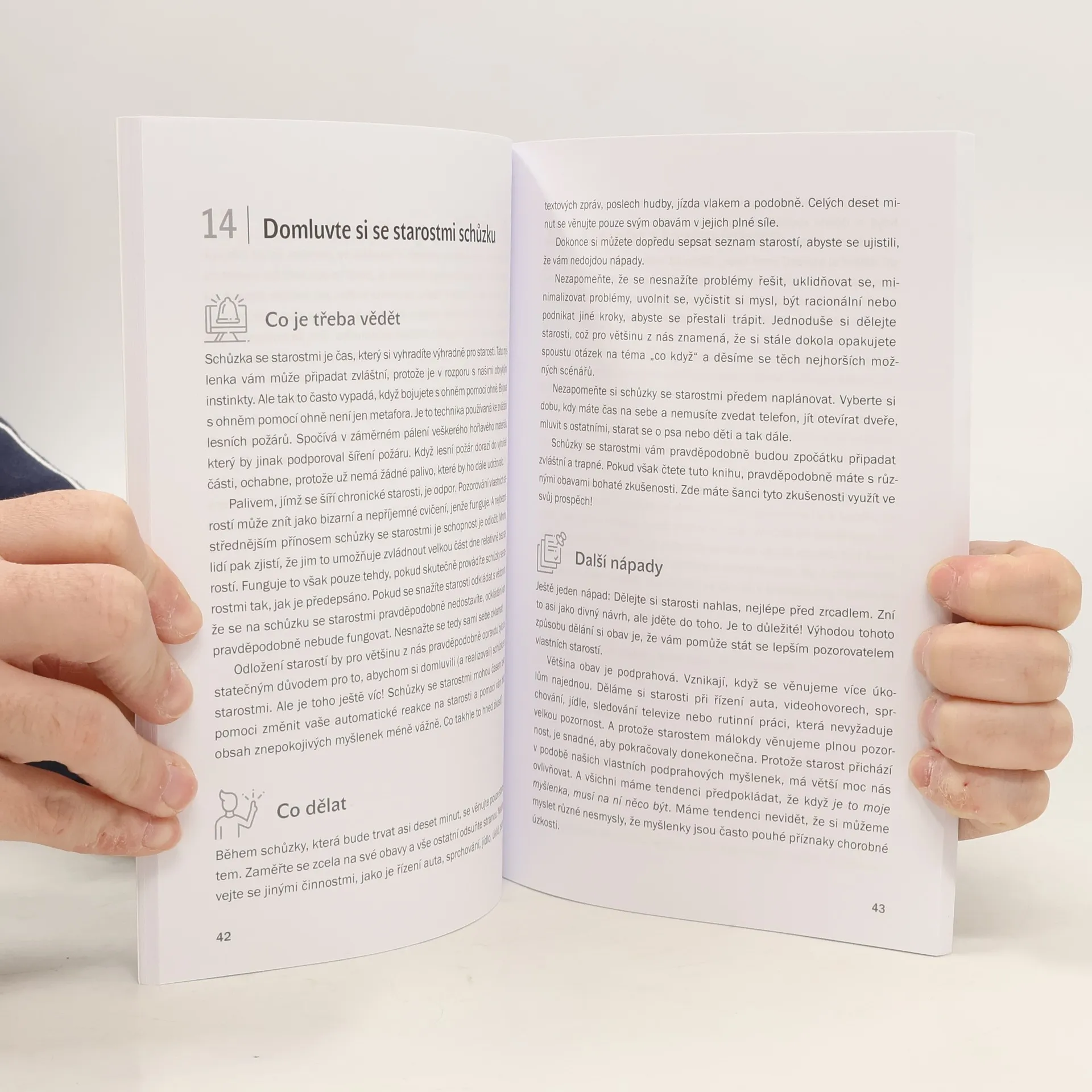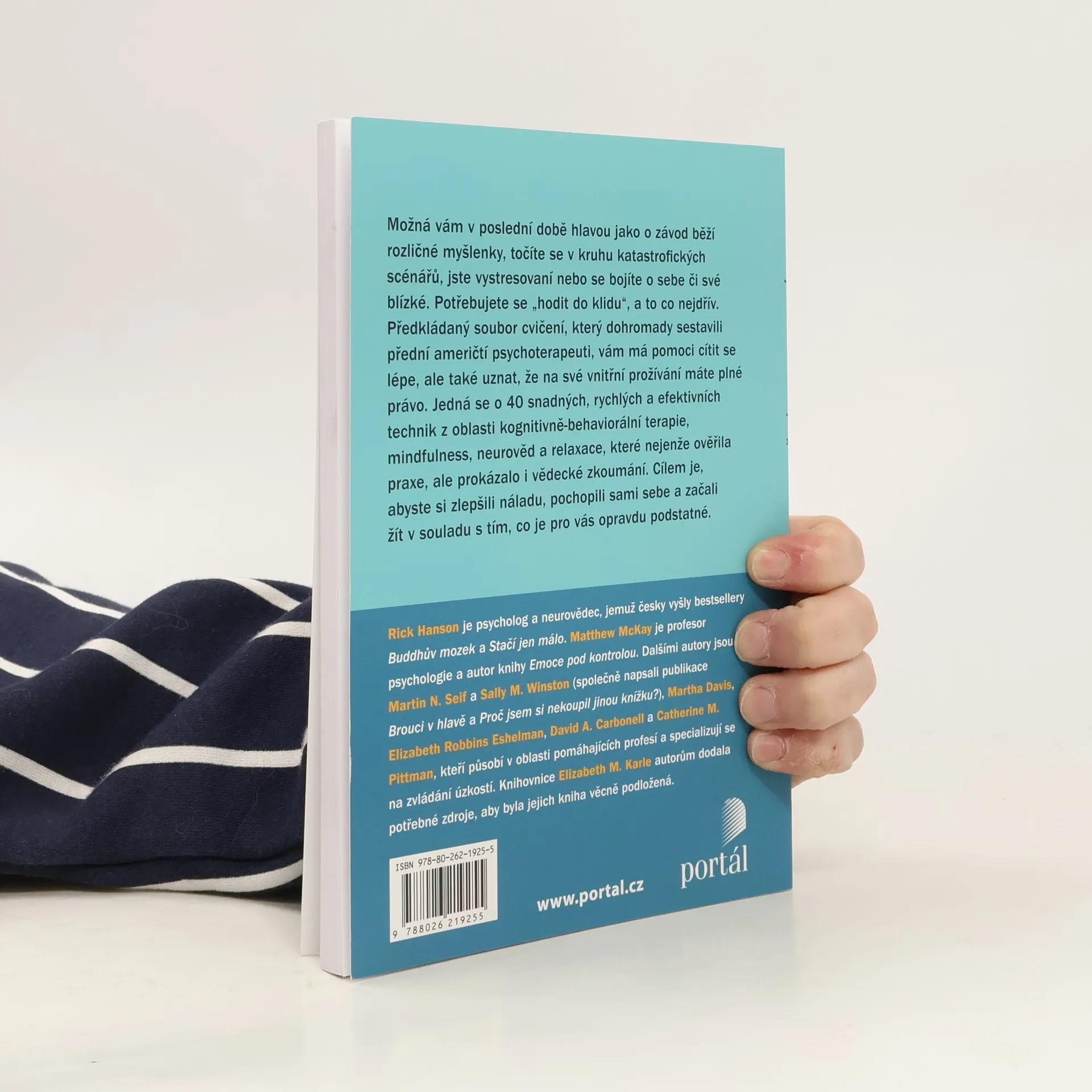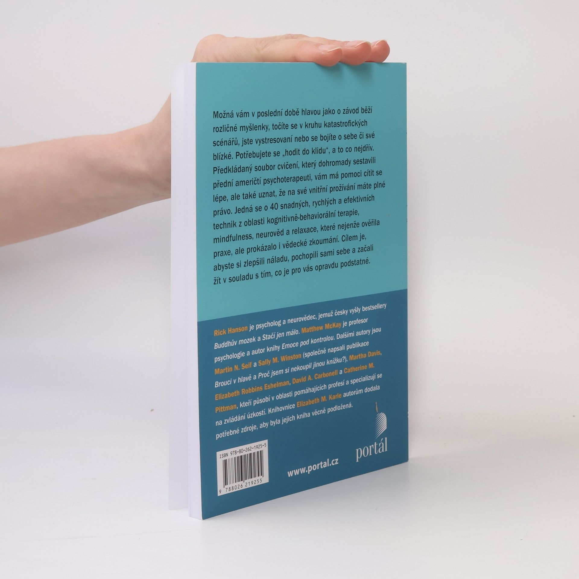 Žijeme v nejisté době. Možná vám v poslední době hlavou jako o závod běží rozličné myšlenky, točíte se v kruhu katastrofických scénářů, jste vystresovaní nebo se bojíte se o sebe či své blízké. Potřebujete se „hodit do klidu“, a to co nejdřív. Předkládaný soubor cvičení, který dohromady sestavili přední američtí profesionálové v oblasti pomáhajících profesí, vám má pomoci cítit se lépe, ale také uznat, že na své vnitřní prožívání máte plné právo. Jedná se o 40 snadných, rychlých a efektivních technik z oblasti kognitivně-behaviorální terapie, mindfulness, neurověd a relaxace, které nejenže ověřila praxe, ale prokázalo i vědecké zkoumání. Cílem je, abyste si zlepšili náladu, pochopili sami sebe a začali žít v souladu s tím, co je pro vás opravdu podstatné. Rick Hanson je psycholog a neurovědec, jemuž česky vyšly bestsellery Buddhův mozek a Stačí jen málo. Matthew McKay je profesor psychologie a autor publikace, která byla v češtině vydána pod názvem Emoce pod kontrolou. Dalšími autory jsou Martin N. Seif a Sally M. Winston (společně napsali knihu Brouci v hlavě), Martha Davis, Elizabeth Robbins Eshelman, David A. Carbonell, Catherine M. Pittman a Elizabeth M. Karle, kteří všichni působí v oblasti pomáhajících profesí a specializují se na zvládání úzkostí.