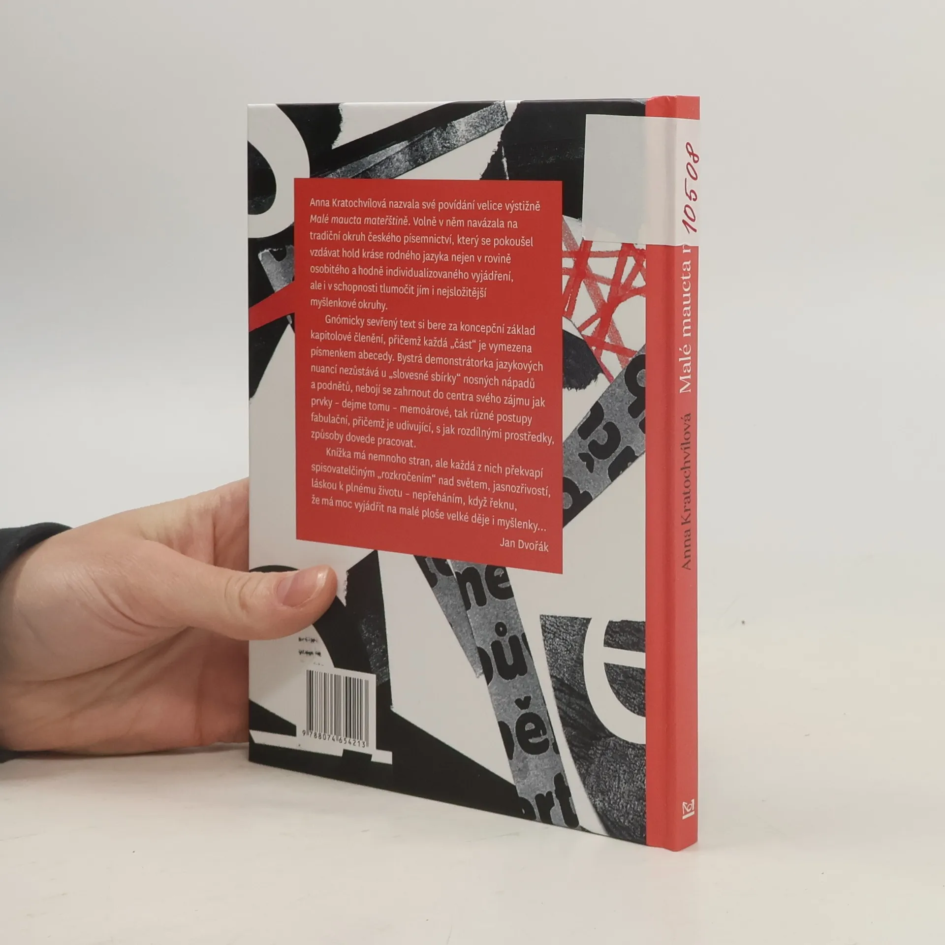 Anna Kratochvílová nazvala své povídání velice výstižně Malé maucta mateřštině. Volně v něm navázala na tradiční okruh českého písemnictví, který se pokoušel vzdávat hold kráse rodného jazyka nejen v rovině osobitého a hodně individualizovaného vyjádření, ale i v schopnosti tlumočit jím i nejsložitější myšlenkové okruhy. Gnómicky sevřený text si bere za koncepční základ kapitolové členění, přičemž každá „část“ je vymezena písmenkem abecedy. Bystrá demonstrátorka jazykových nuancí nezůstává u „slovesné sbírky“ nosných nápadů a podnětů, nebojí se zahrnout do centra svého zájmu jak prvky – dejme tomu – memoárové, tak různé postupy fabulační, přičemž je udivující, s jak rozdílnými prostředky, způsoby dovede pracovat. Knížka má nemnoho stran, ale každá z nich překvapí spisovatelčiným „rozkročením“ nad světem, jasnozřivostí, láskou k plnému životu – nepřeháním, když řeknu, že má moc vyjádřit na malé ploše velké děje i myšlenky…
